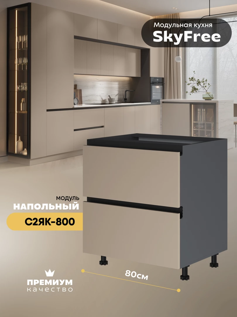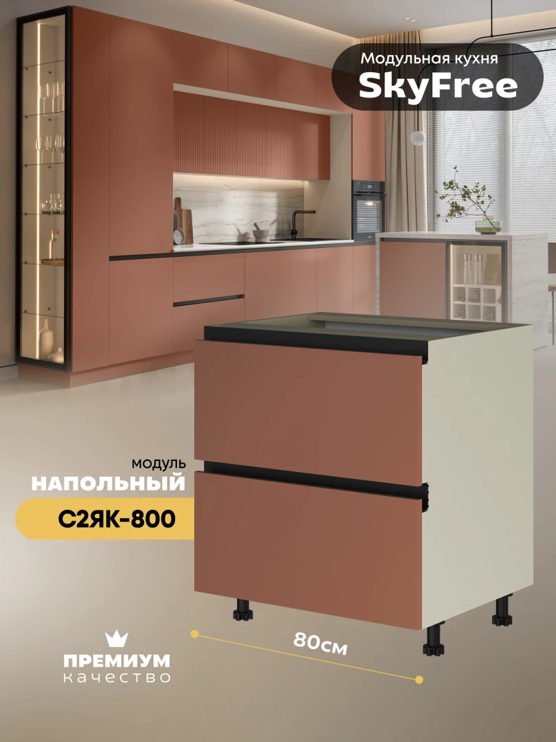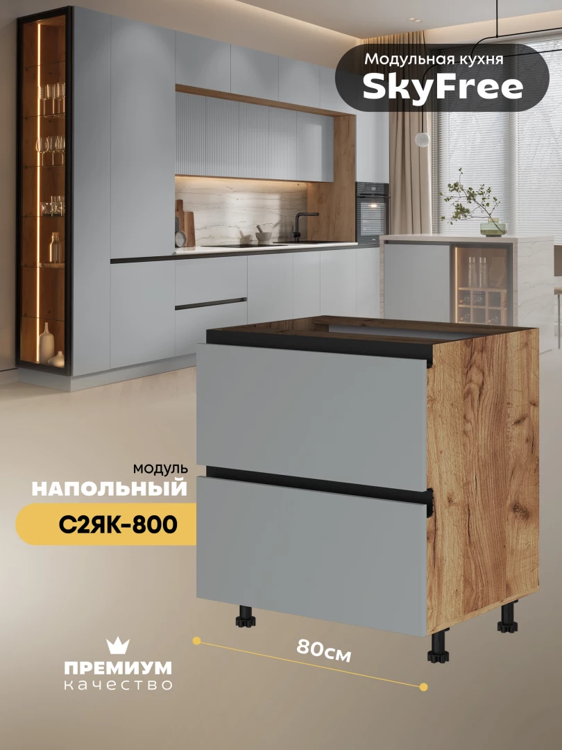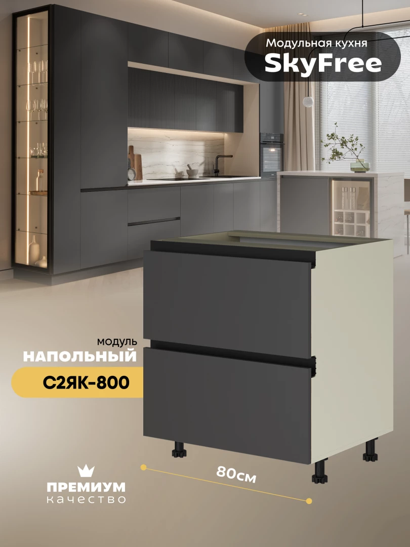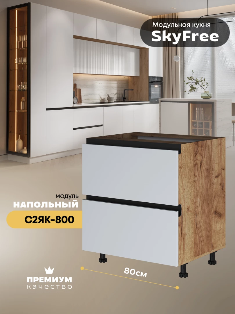 Кухонный напольный модуль с двумя выдвижными ящиками "СкайФри" С2ЯК-800 Матовый