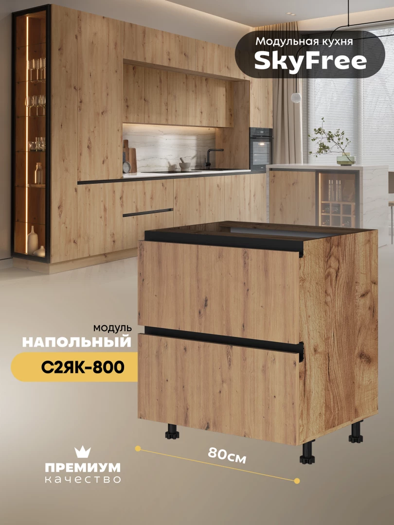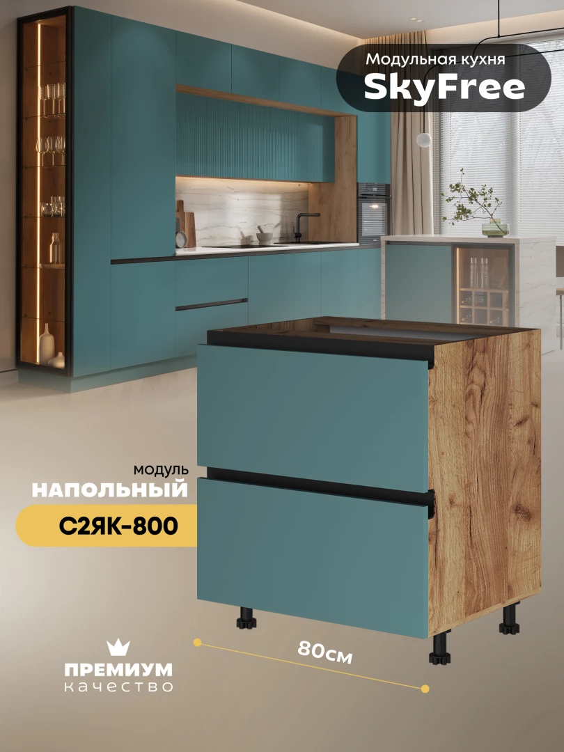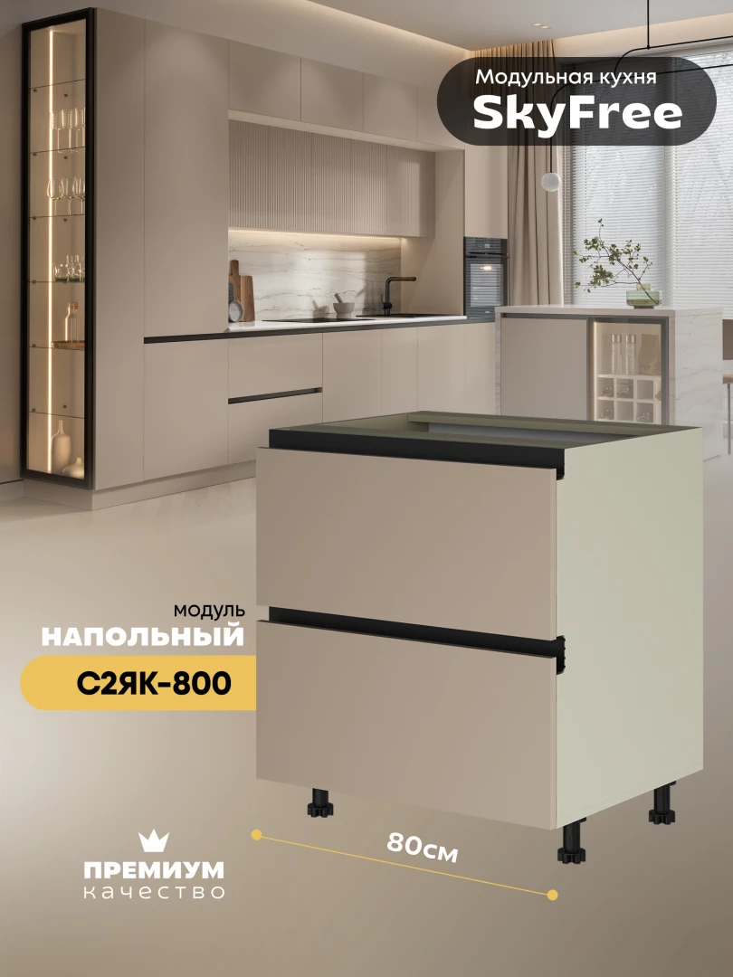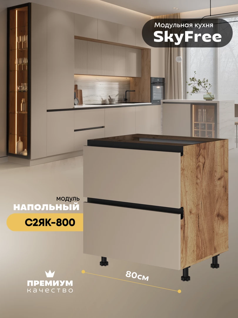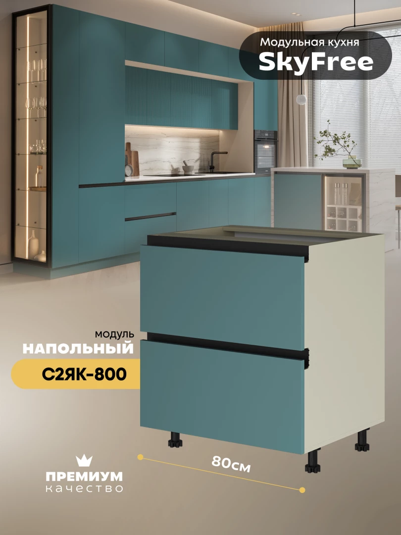 Кухонный напольный модуль с двумя выдвижными ящиками "СкайФри" С2ЯК-800 Матовый