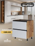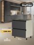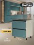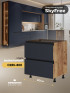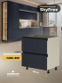 Кухня-гостинная СкайФри специально разработана для квартир с объединенной кухней и гостиной. Трехуровневые кухни оснащены антресолями. Большой выбор модулей. Уникальные модули и тумба-остров.