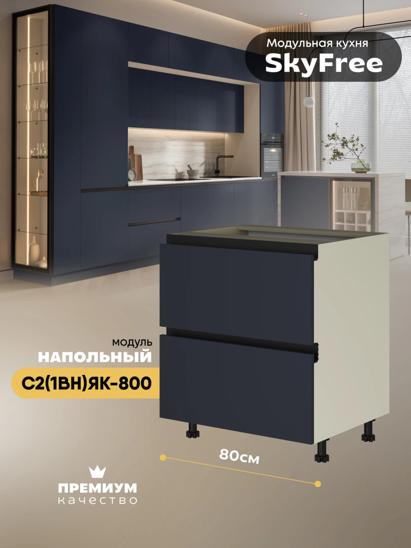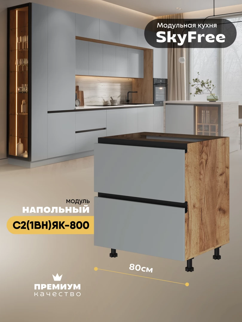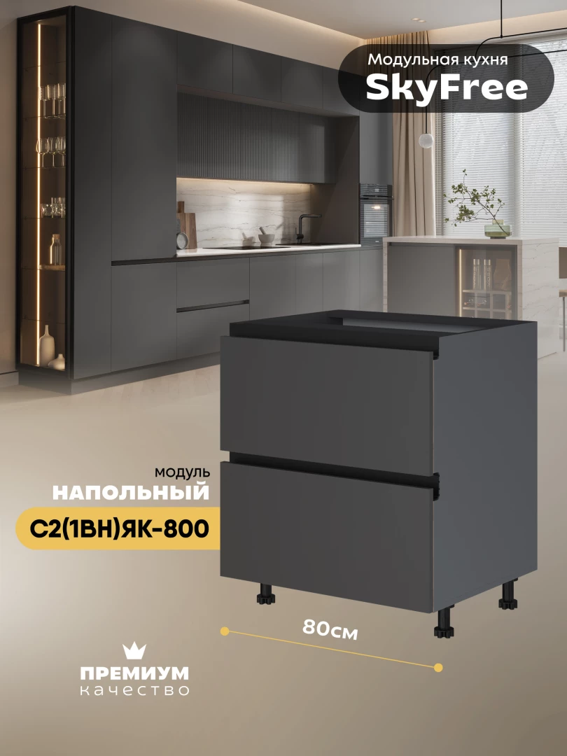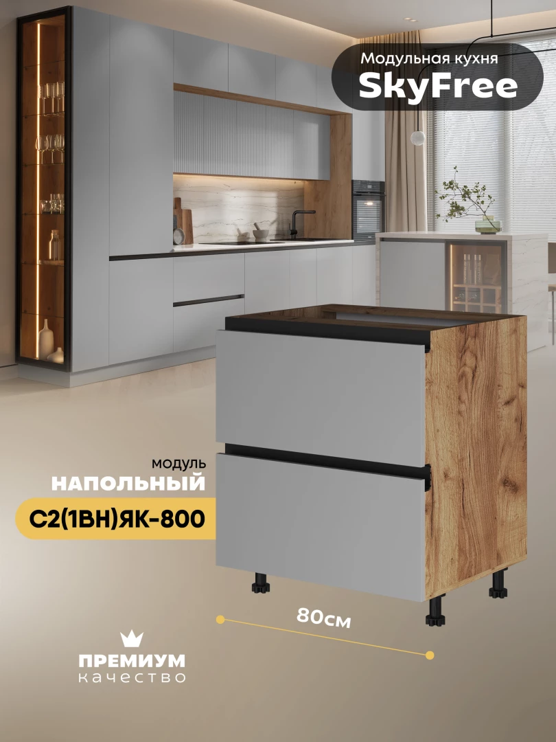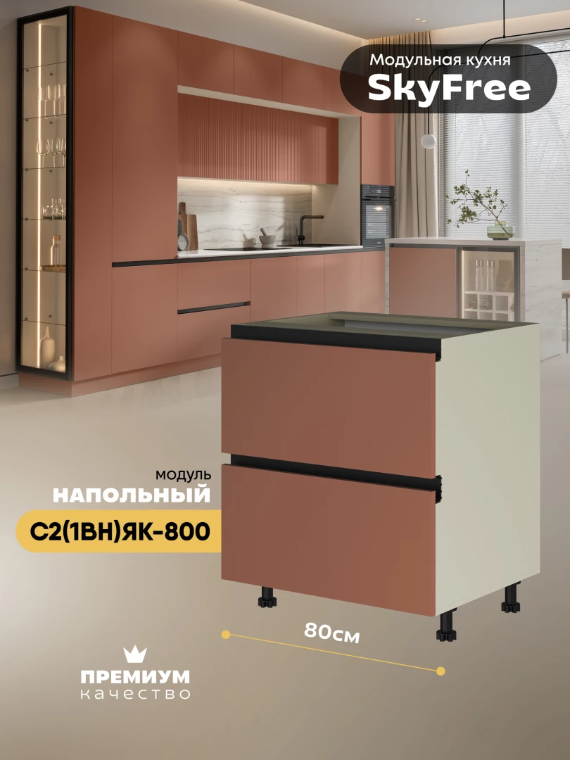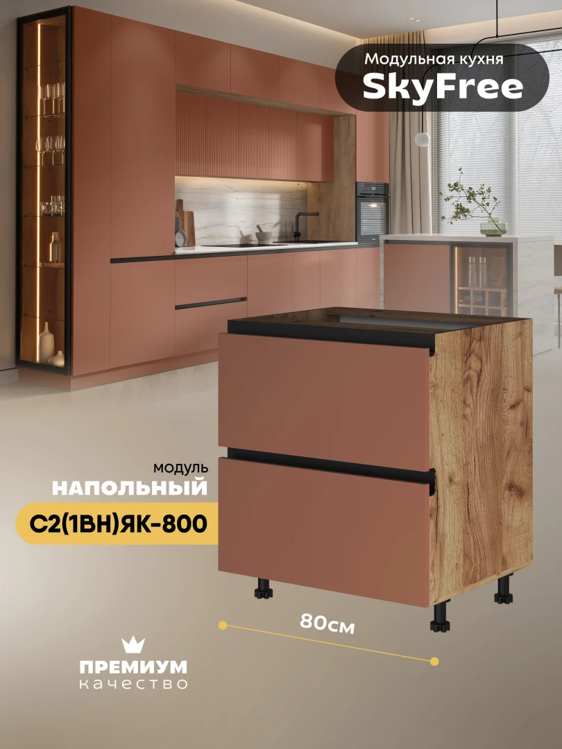 Кухонный напольный модуль с выдвижными ящиками (1 внутренний) "СкайФри" С2(1вн)ЯК-800 Матовый