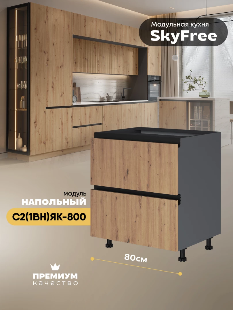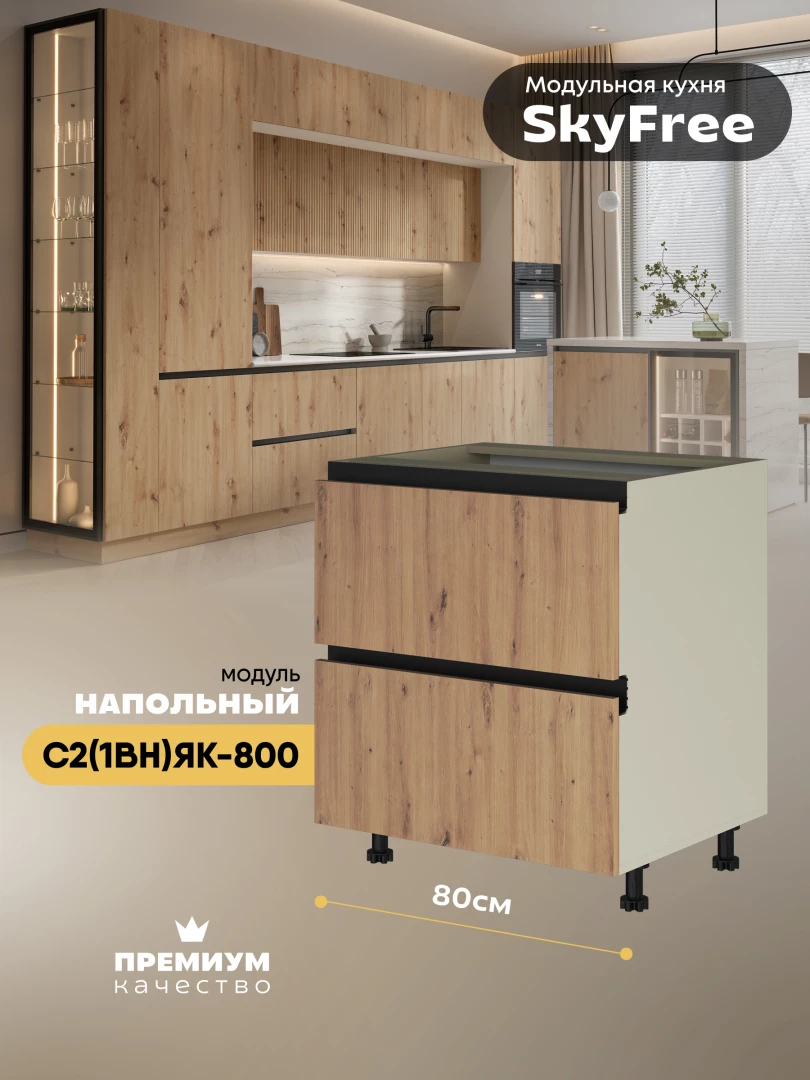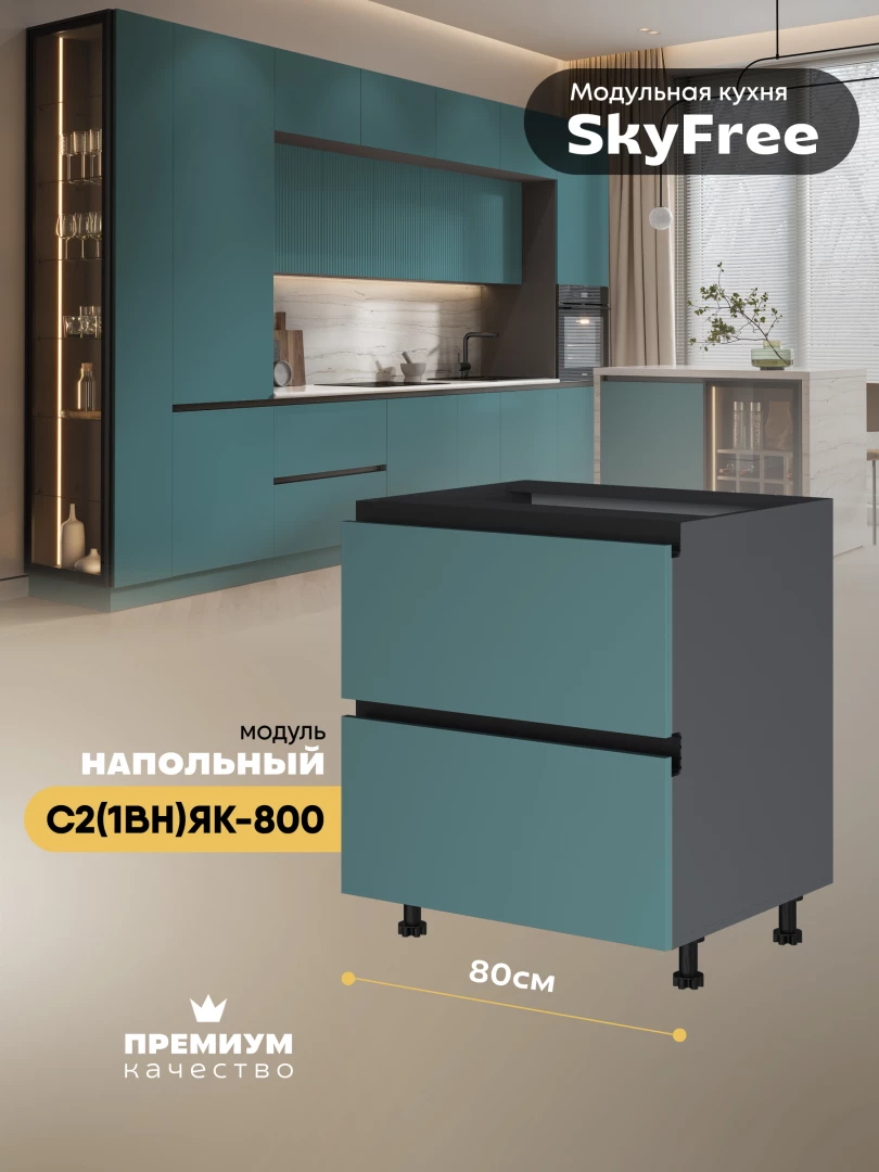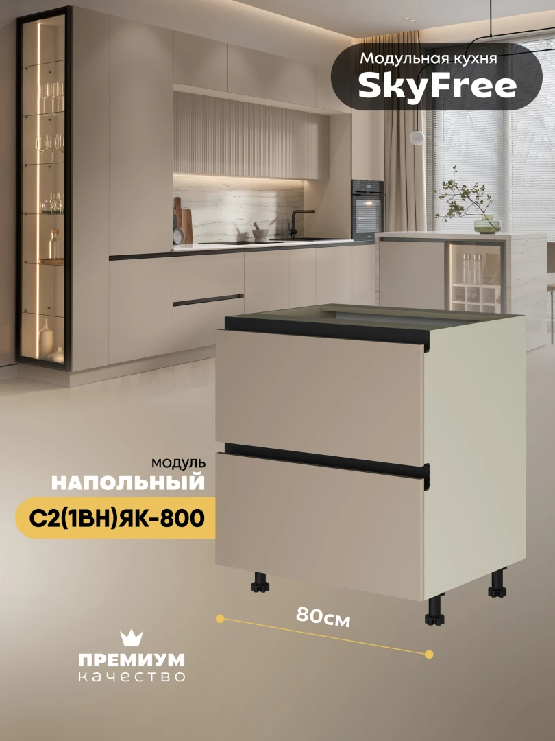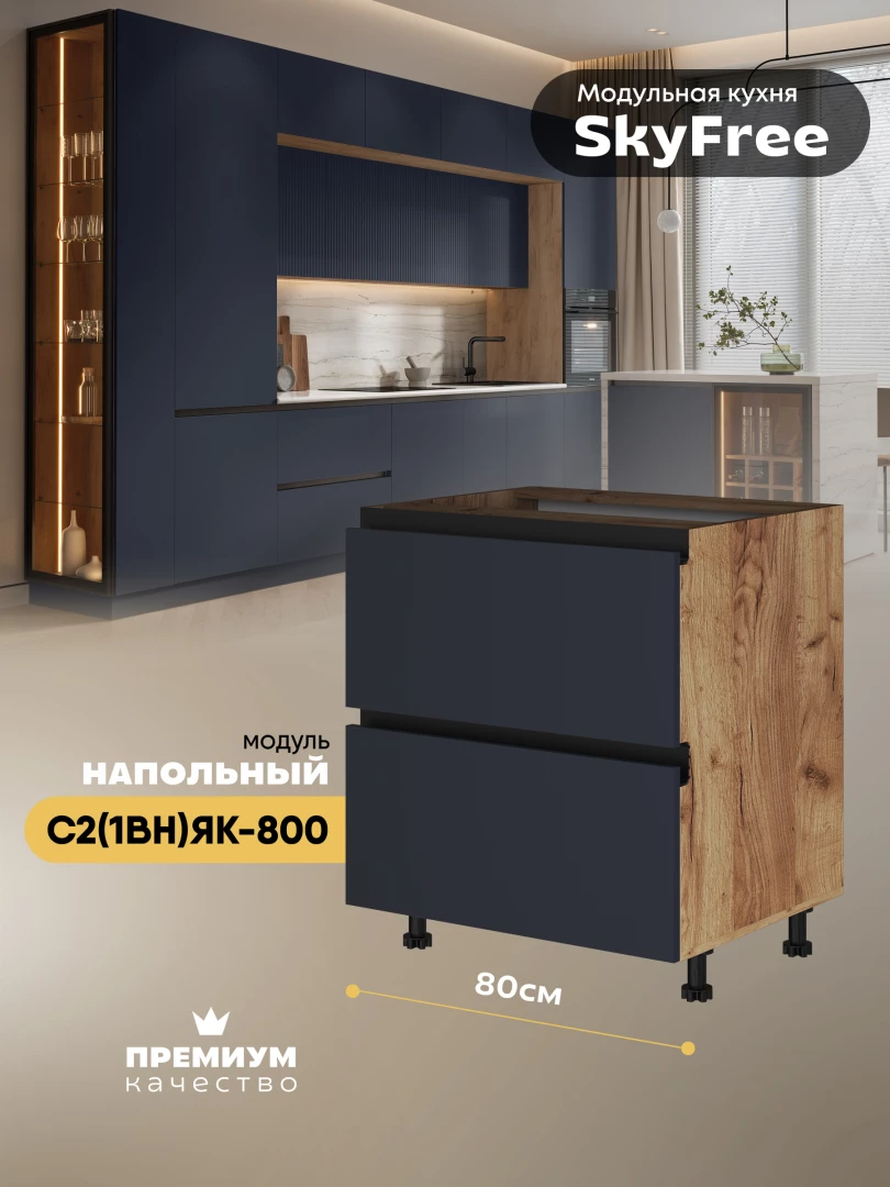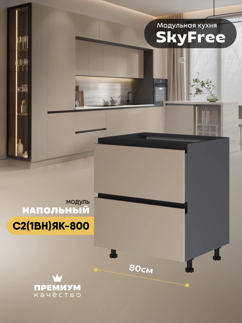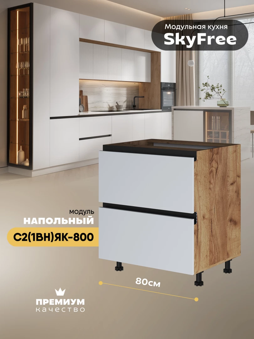Кухонный напольный модуль с выдвижными ящиками (1 внутренний) "СкайФри" С2(1вн)ЯК-800 Матовый