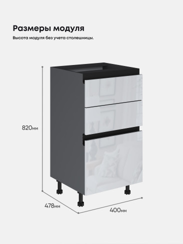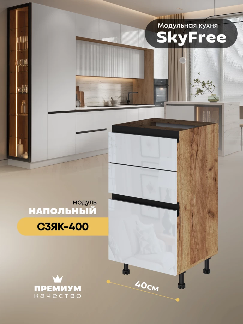 Кухонный напольный модуль с тремя выдвижными ящиками "СкайФри" С3ЯК-400 Глянцевый