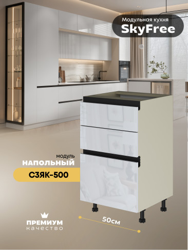 Кухонный напольный модуль с тремя выдвижными ящиками "СкайФри" С3ЯК-500 Глянцевый