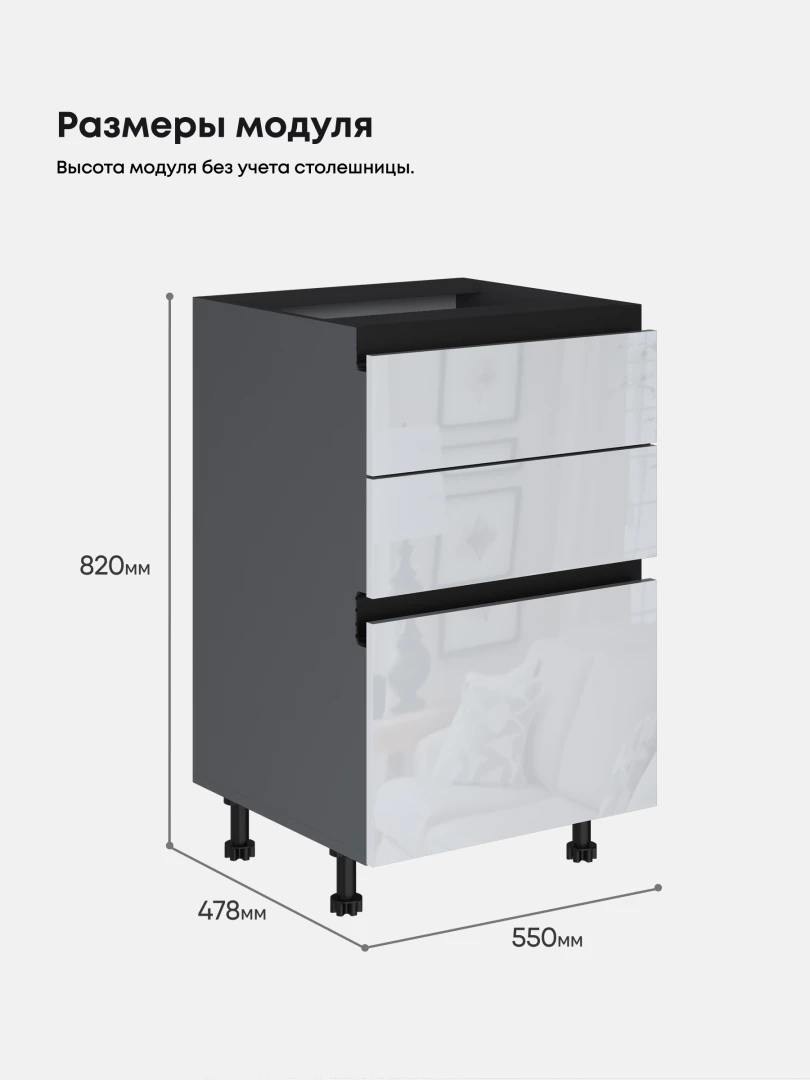 Кухонный напольный модуль с тремя выдвижными ящиками "СкайФри" С3ЯК-550 Глянцевый