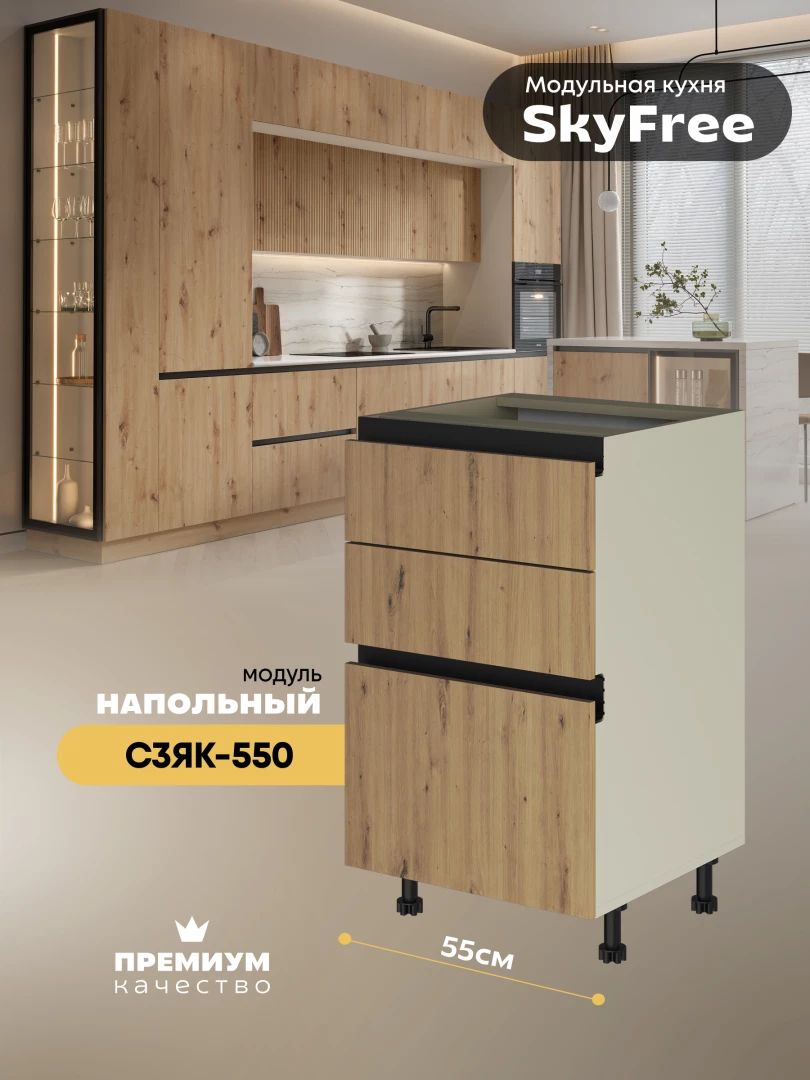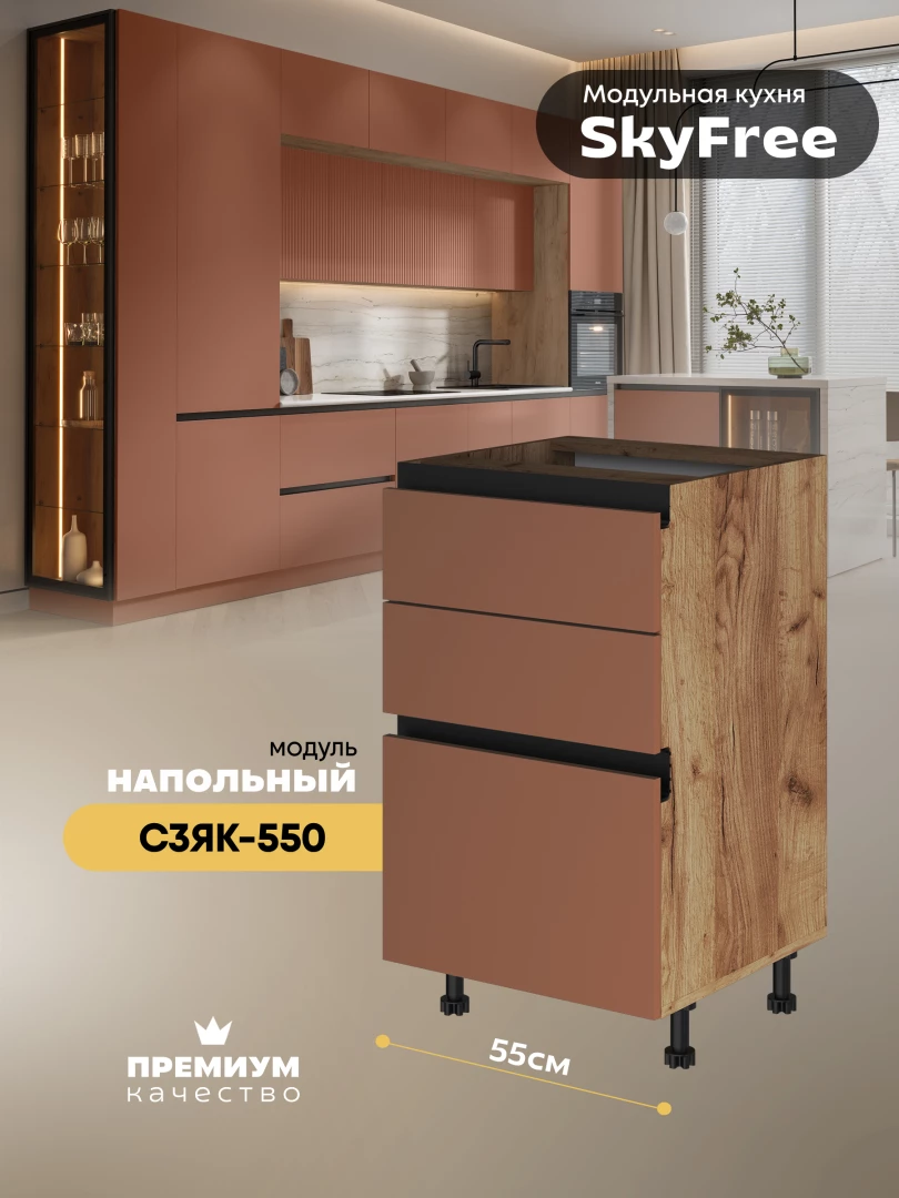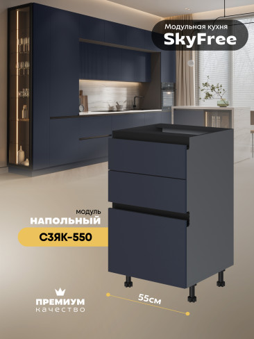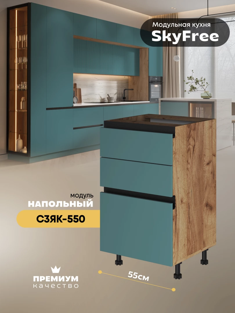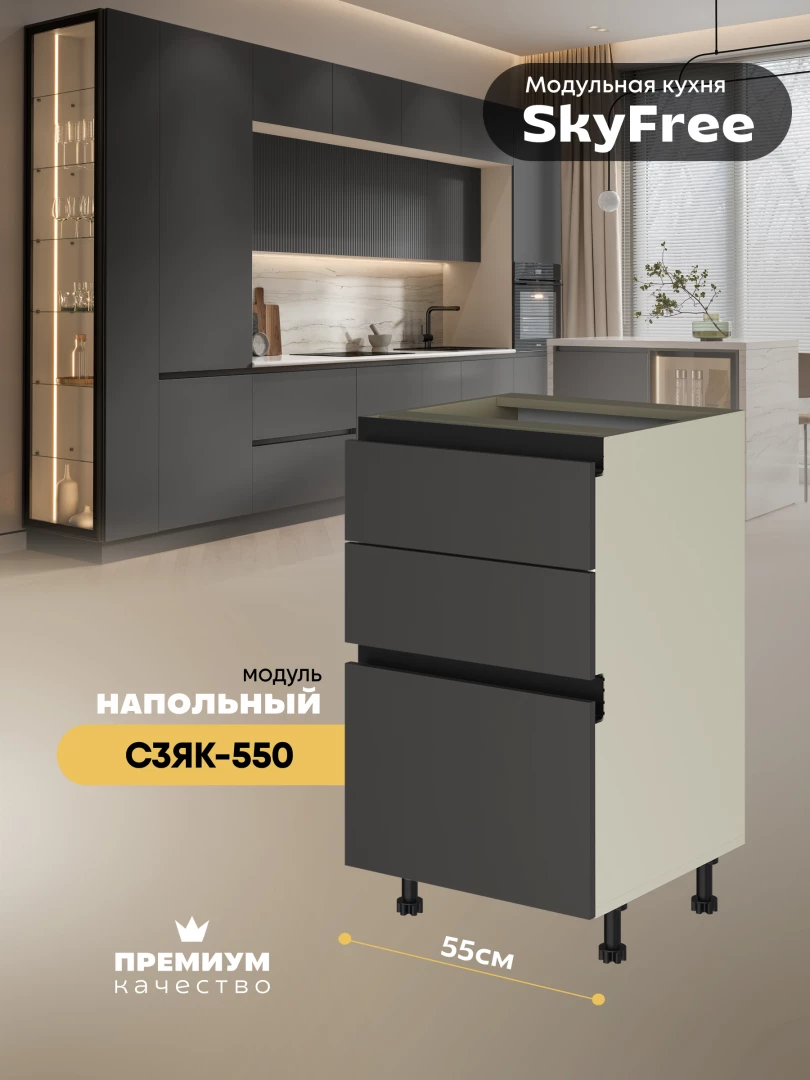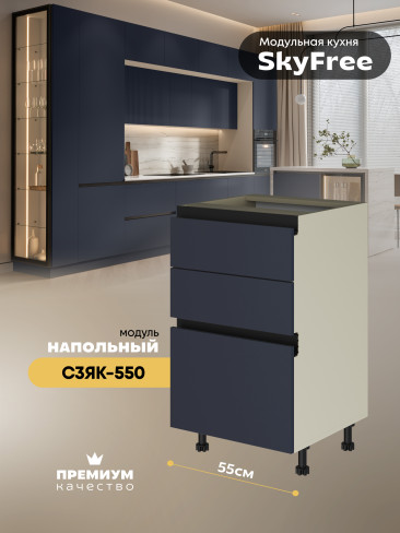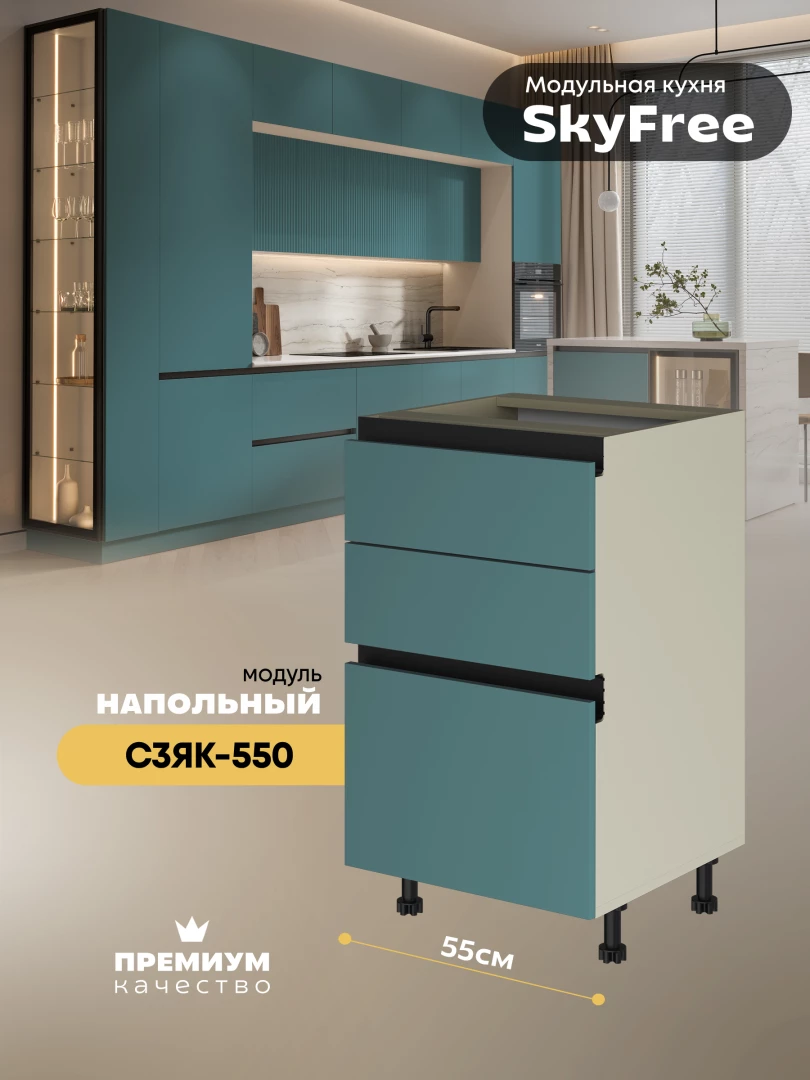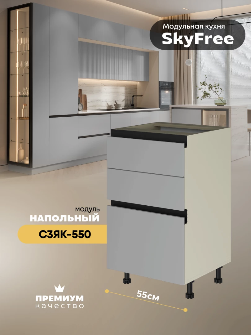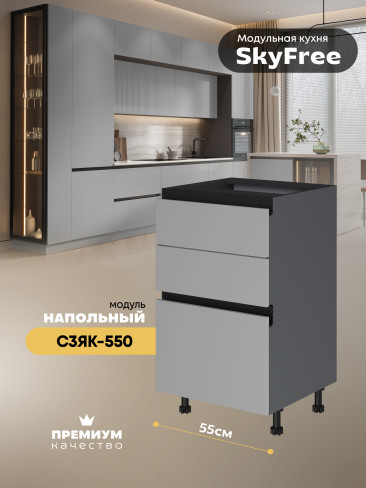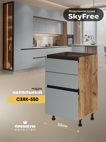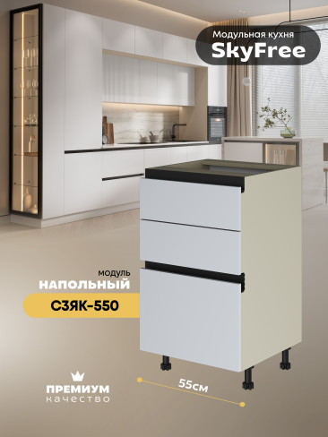 Кухонный напольный модуль с тремя выдвижными ящиками "СкайФри" С3ЯК-550 Матовый