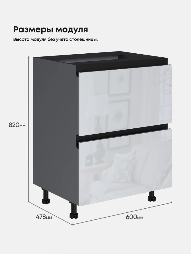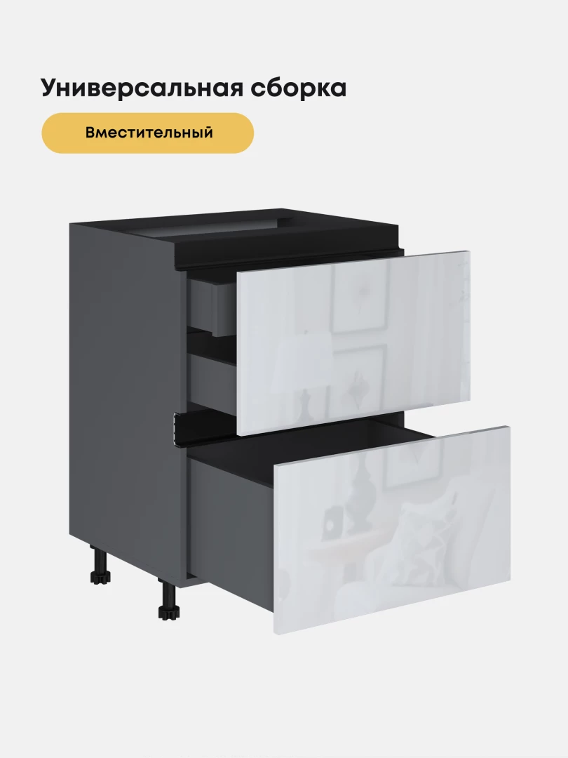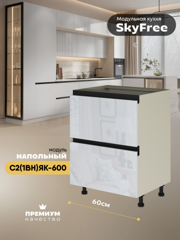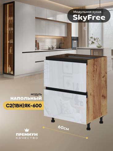 Кухонный напольный модуль с выдвижными ящиками (1 внутренний) "СкайФри" С2(1вн)ЯК-600 Глянцевый