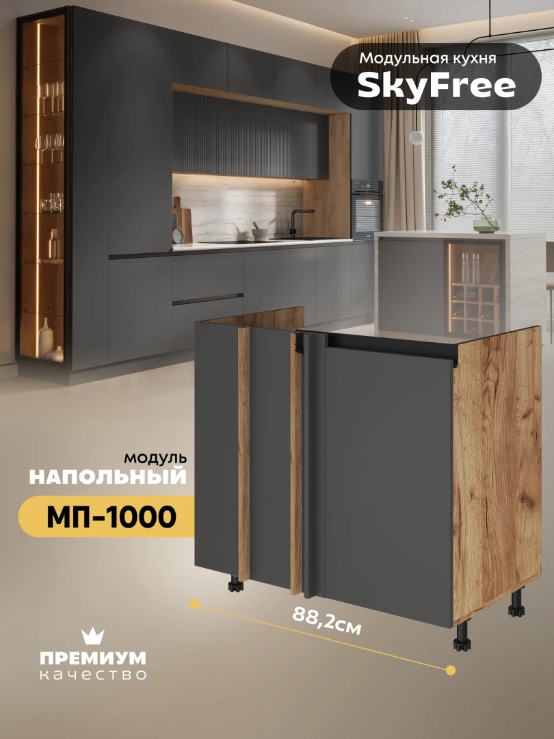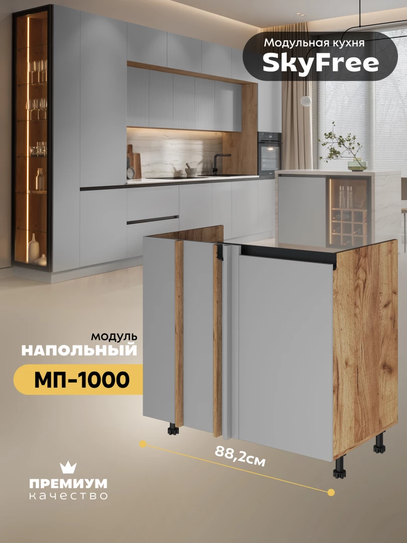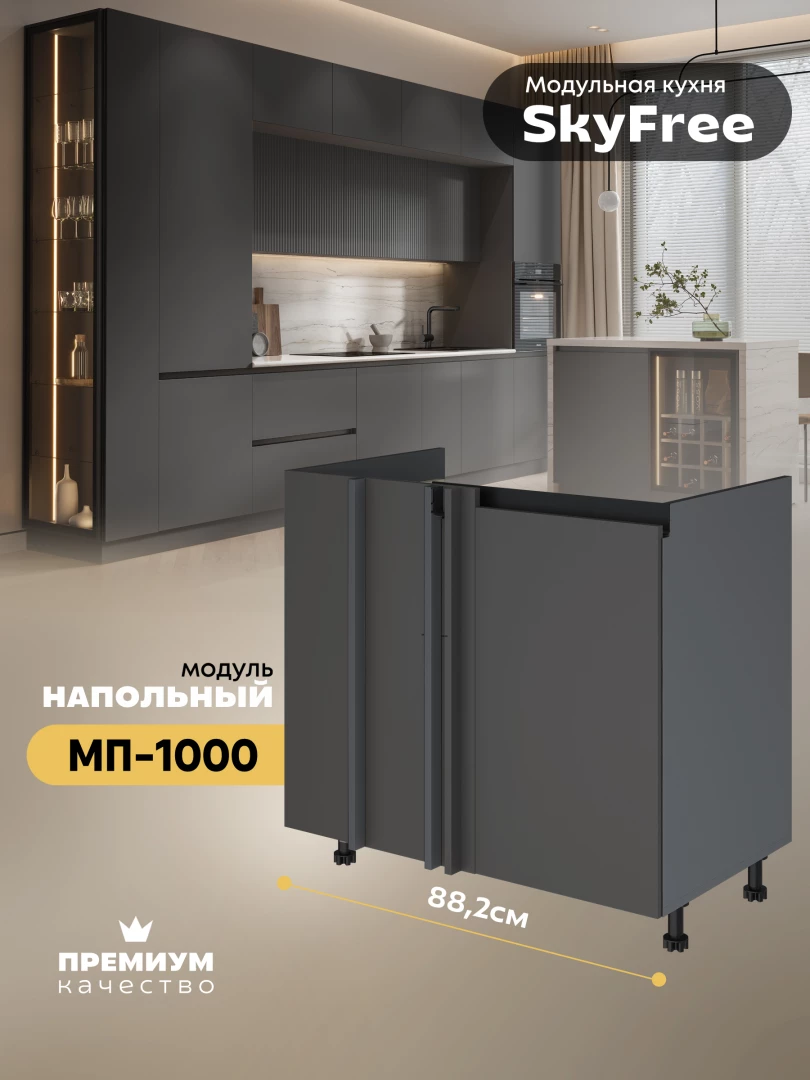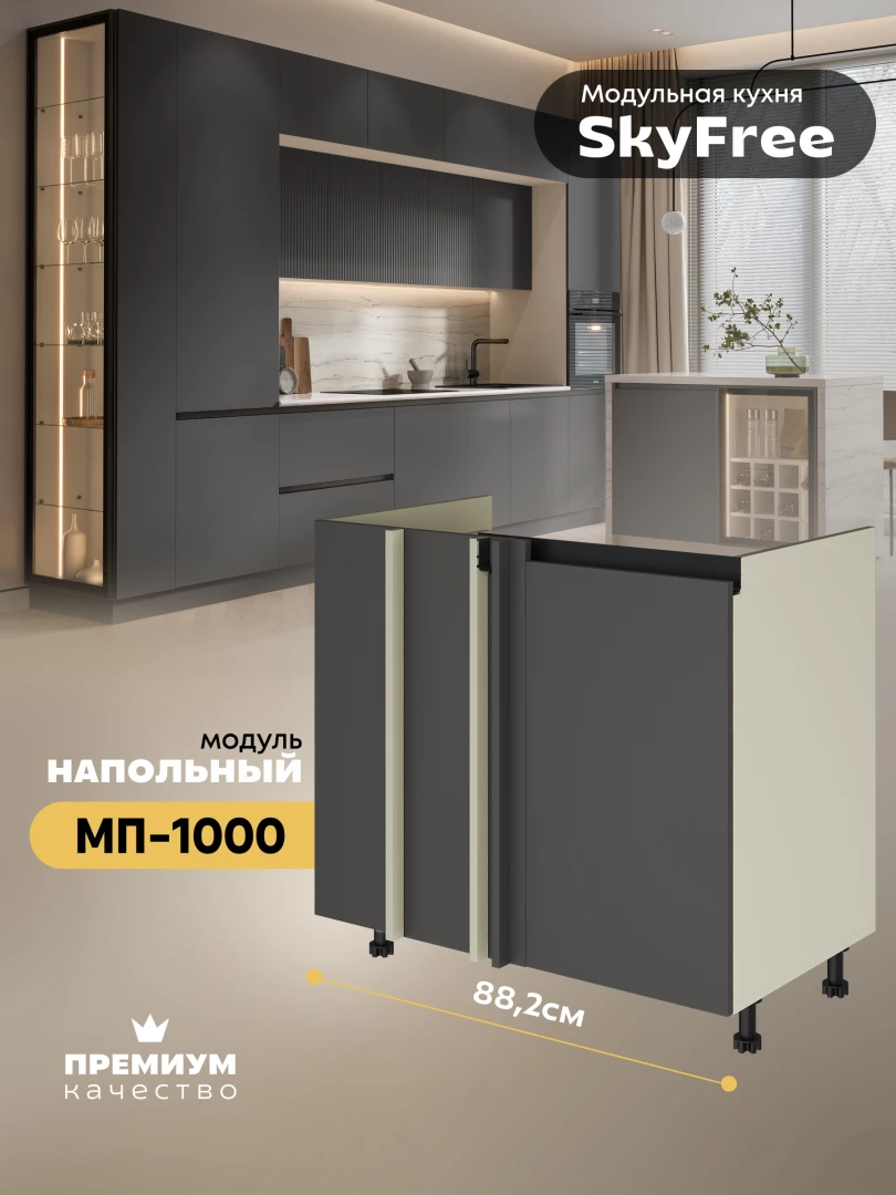 Кухонный напольный угловой модуль под мойку "СкайФри" МП-1000(угл. 1ств.) Матовый