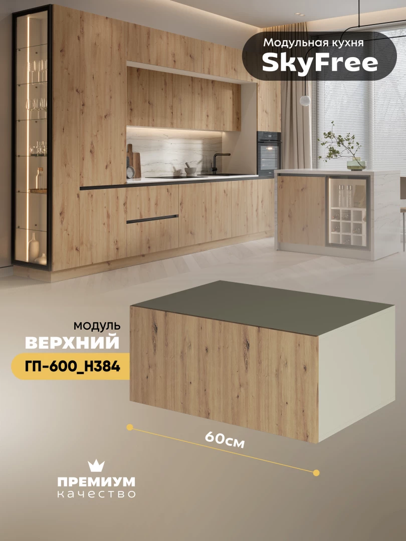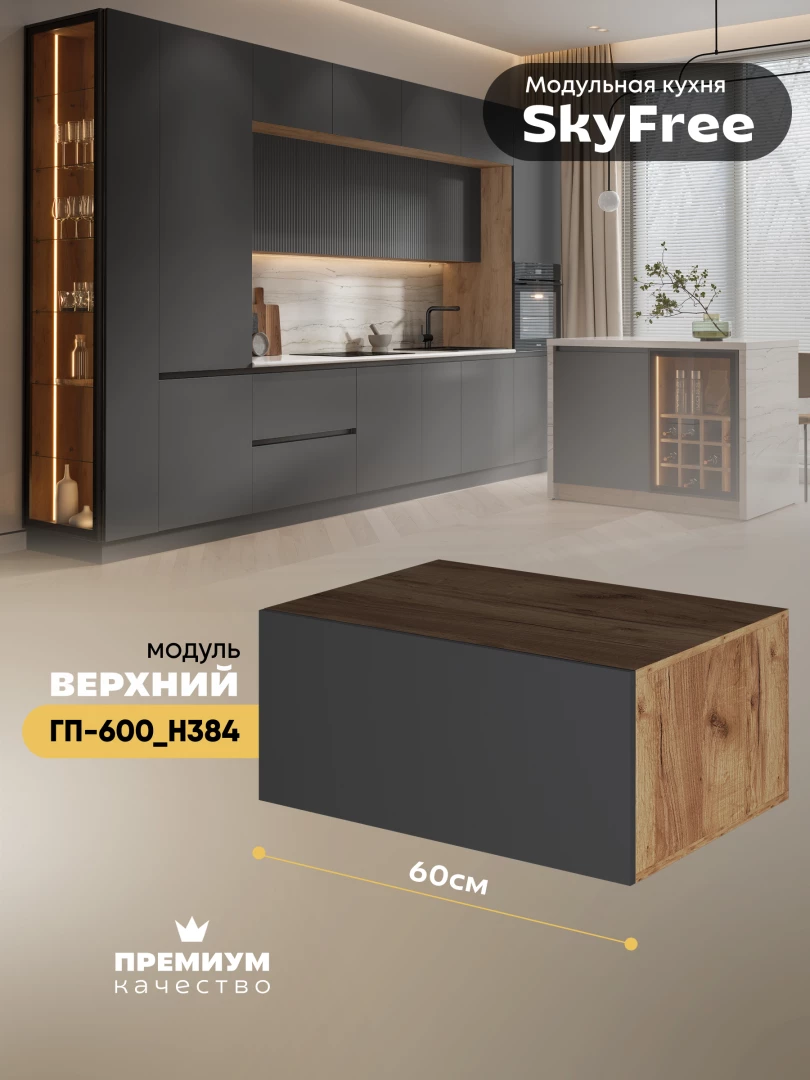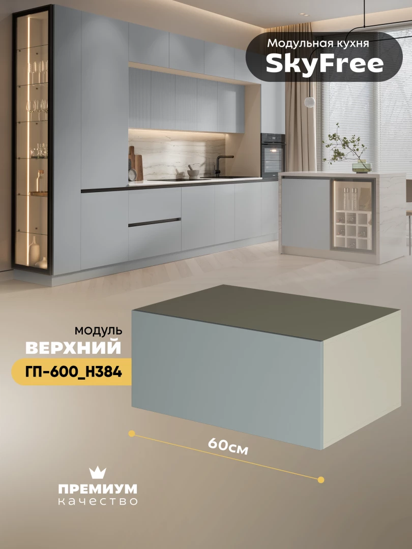 Кухонный навесной горизонтальный модуль (антресоль) "СкайФри" ГП-600_Н384 Матовый