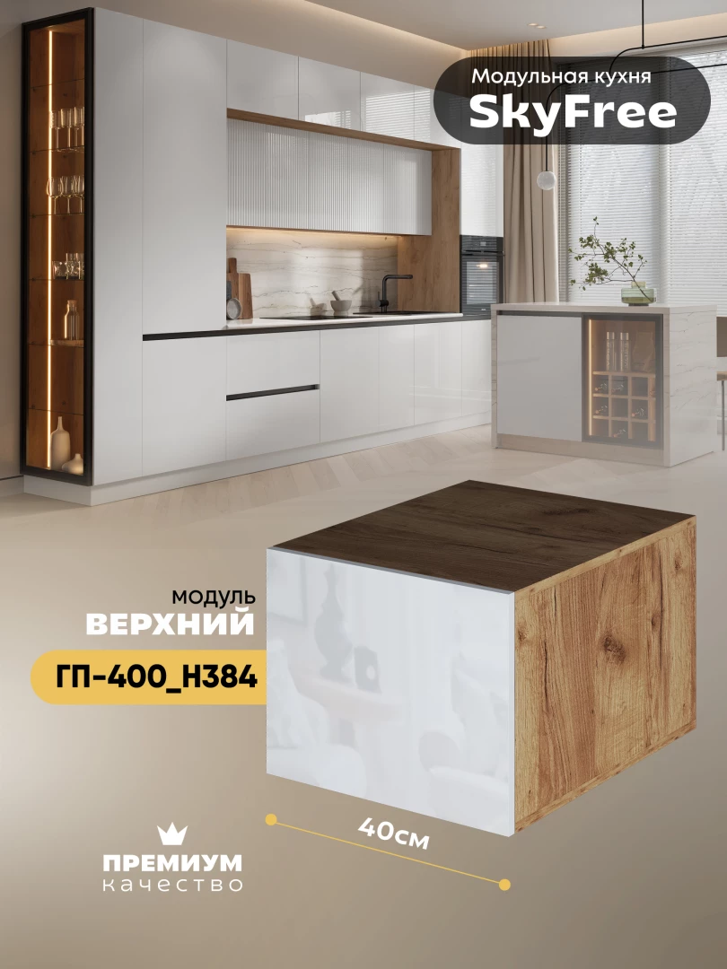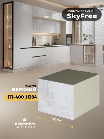 Кухонный навесной модуль (антресоль) "СкайФри" ГП-400_Н384 Белый глянец