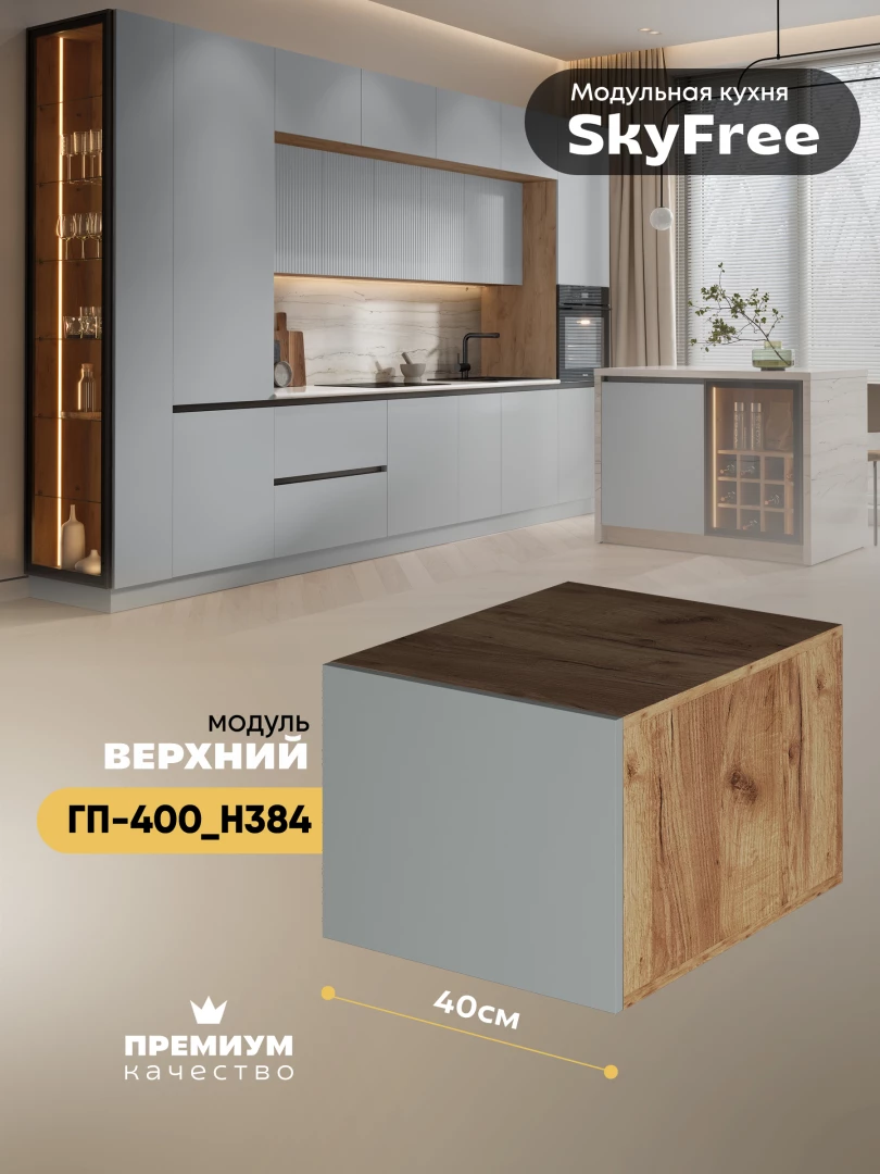 Кухонный навесной модуль (антресоль) "СкайФри" ГП-400_Н384 Дуб крафт золотой