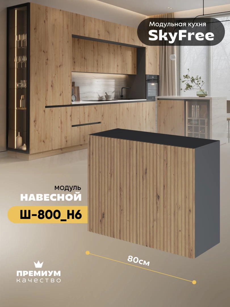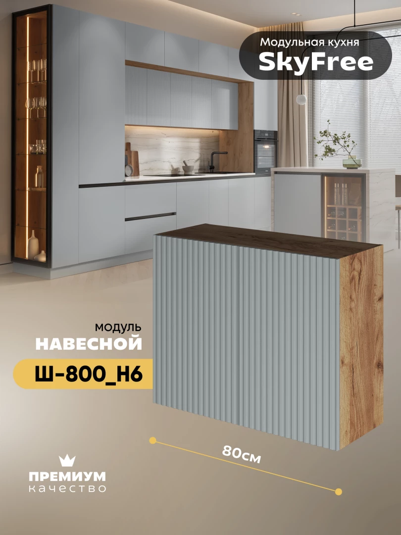 Кухонный навесной модуль с двумя створками "СкайФри" Ш-800_Н6 Матовый