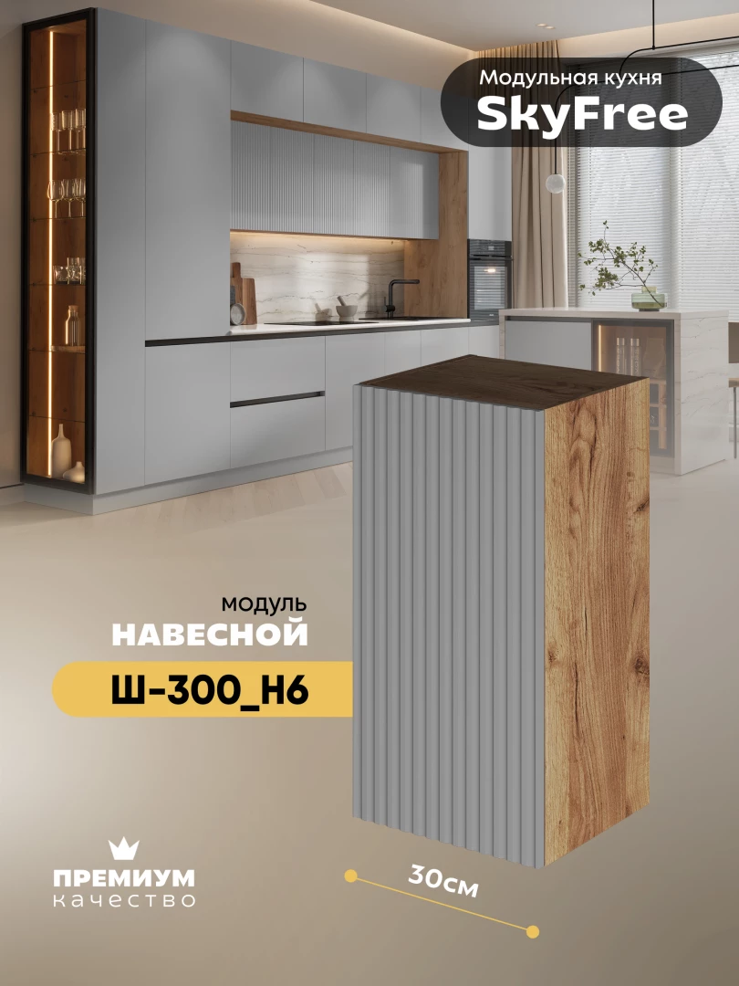 Кухонный навесной модуль "СкайФри" Ш-300_Н6 Матовый