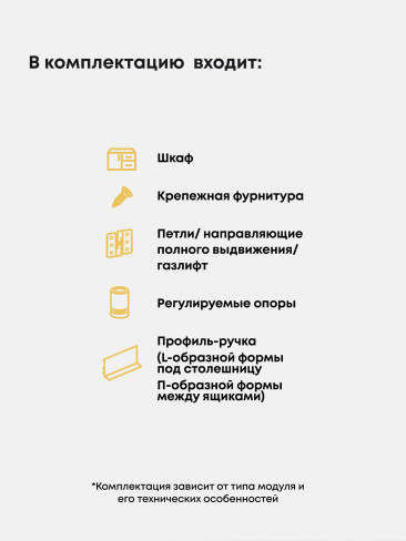 Ящики на направляющих скрытого монтажа обеспечивают полное, плавное и бесшумное выдвижение ящиков. Разнообразие актуальных расцветок фасада и корпуса поможет найти для себя комфортное решение для удачного сочетания с гостиной.