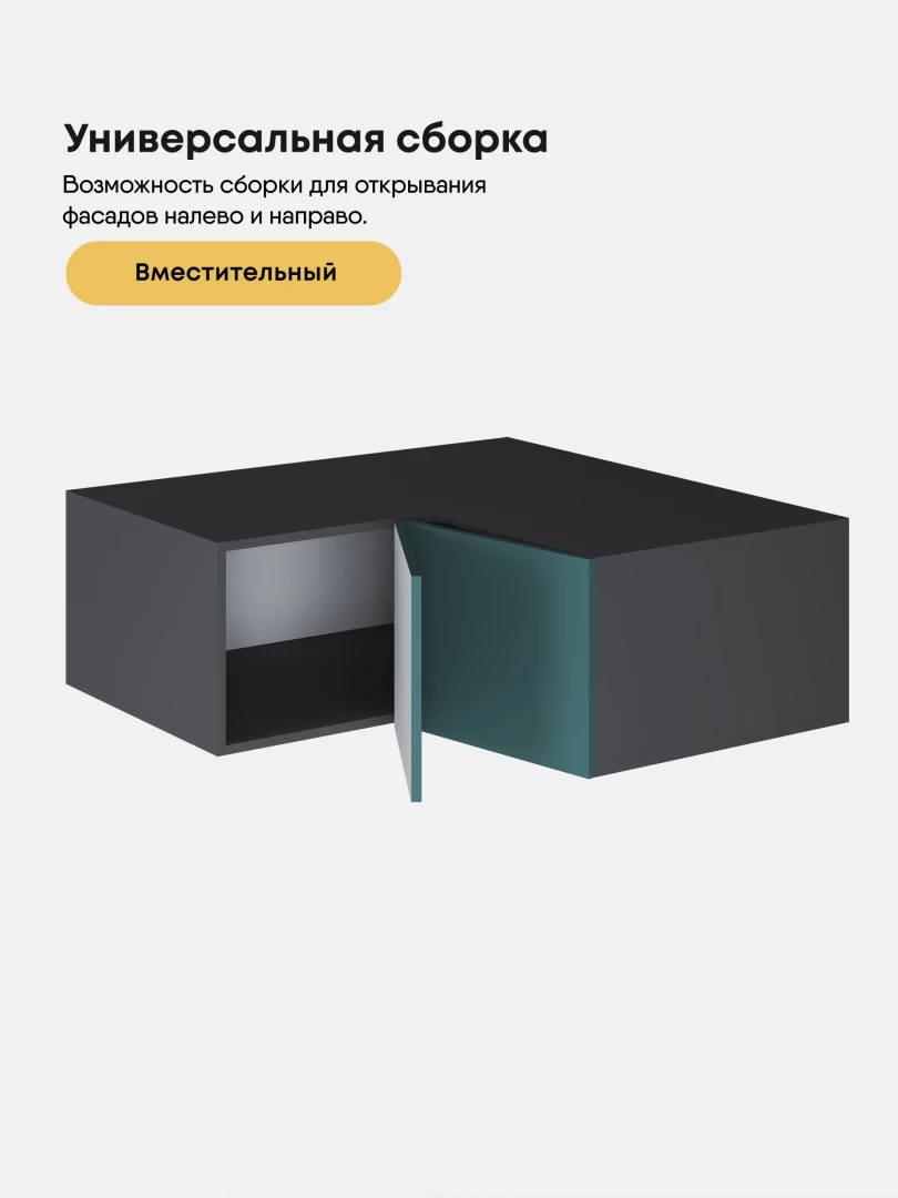 Ящики на направляющих скрытого монтажа обеспечивают полное, плавное и бесшумное выдвижение ящиков. Разнообразие актуальных расцветок фасада и корпуса поможет найти для себя комфортное решение для удачного сочетания с гостиной.