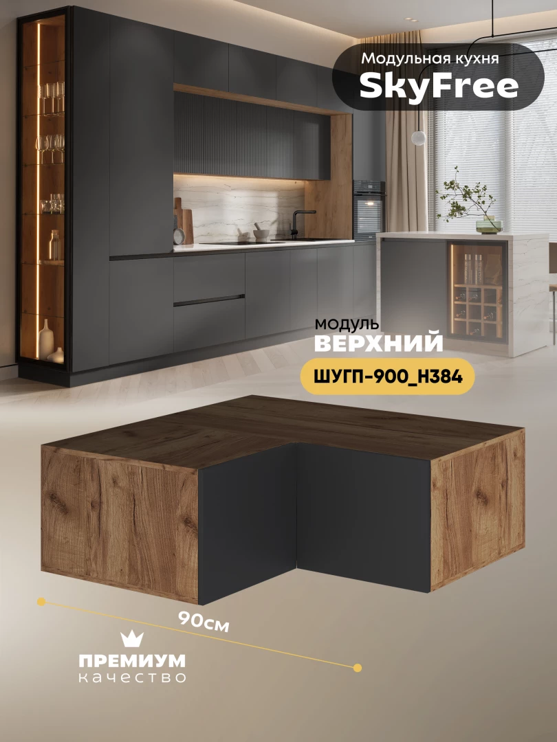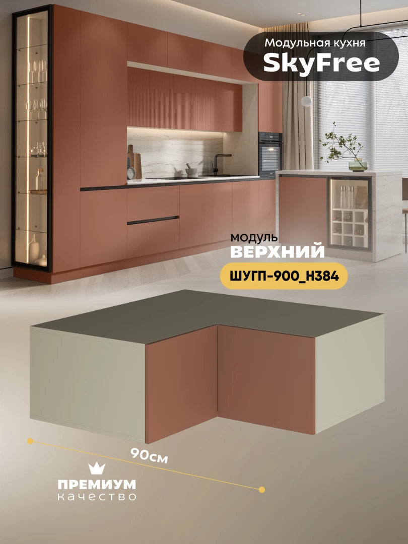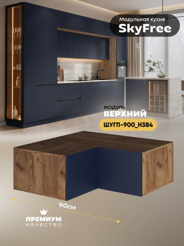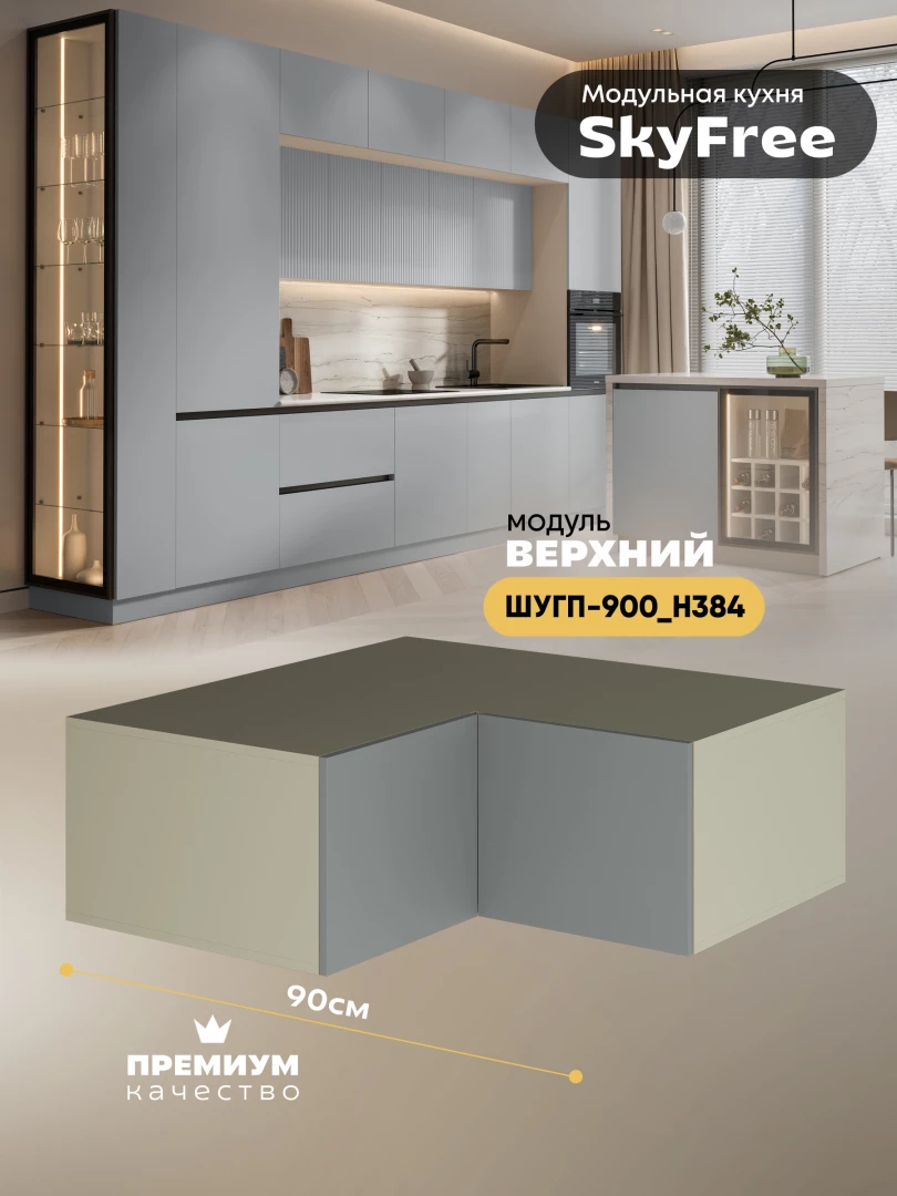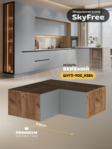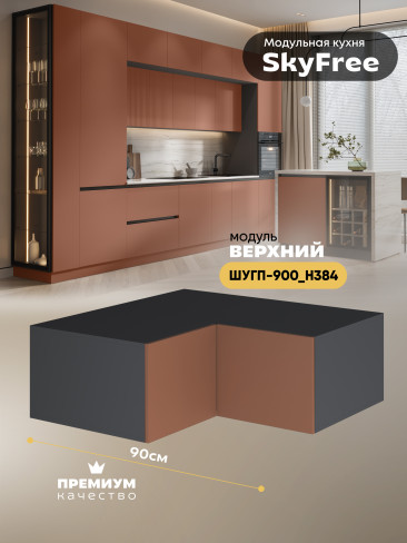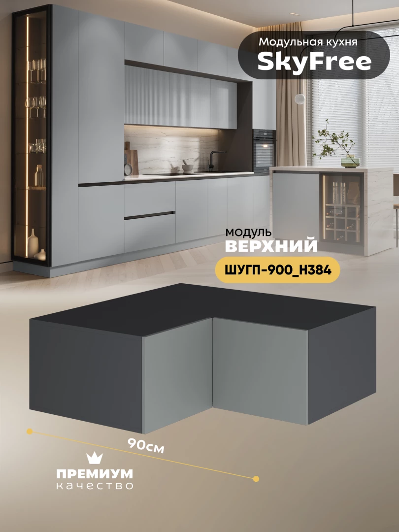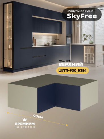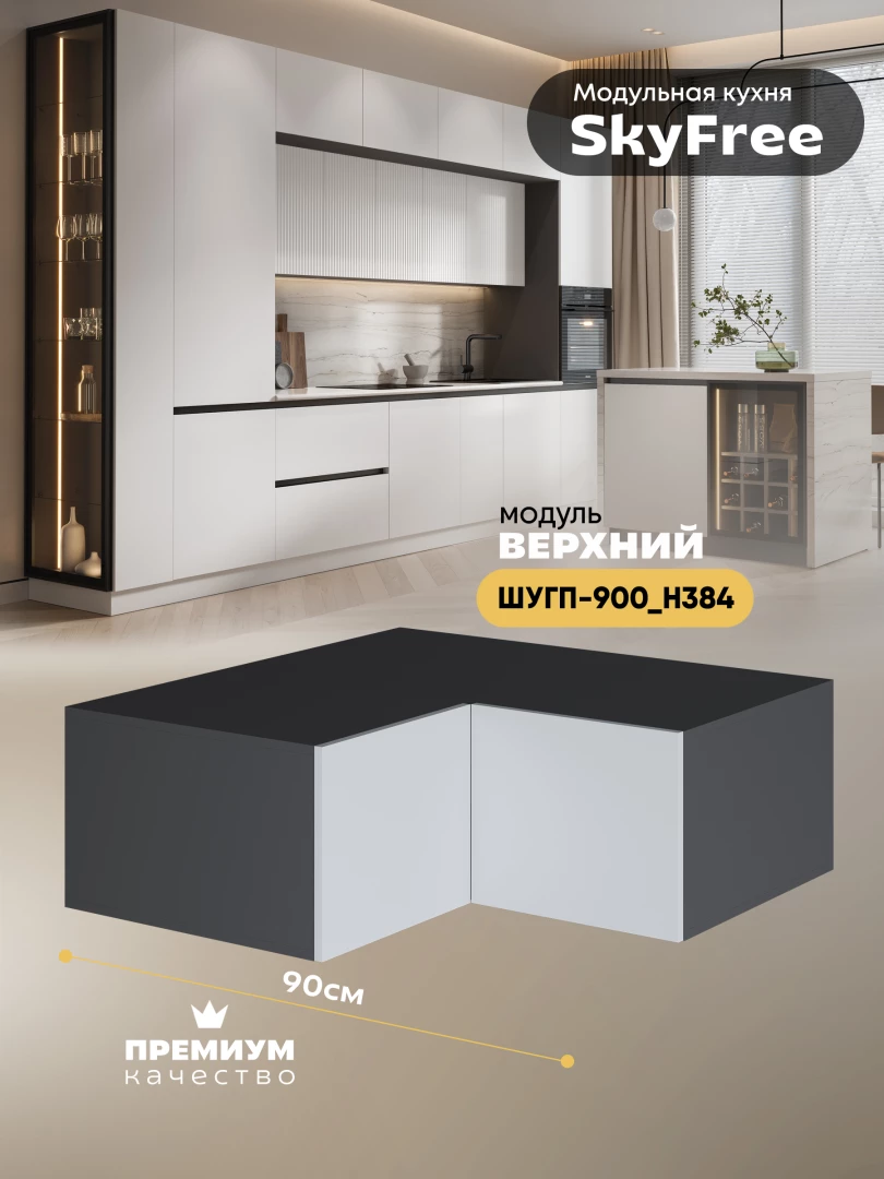 Кухонный навесной угловой модуль (антресоль) "СкайФри" ШУГП-900_Н384 Матовый
