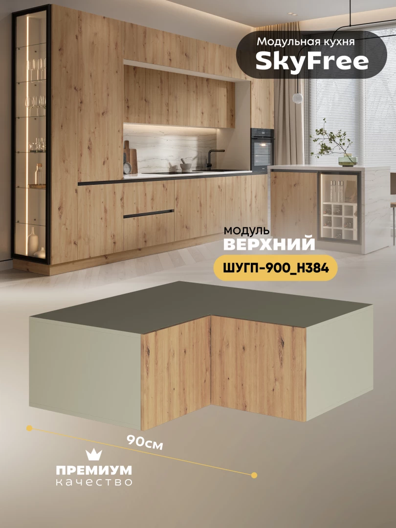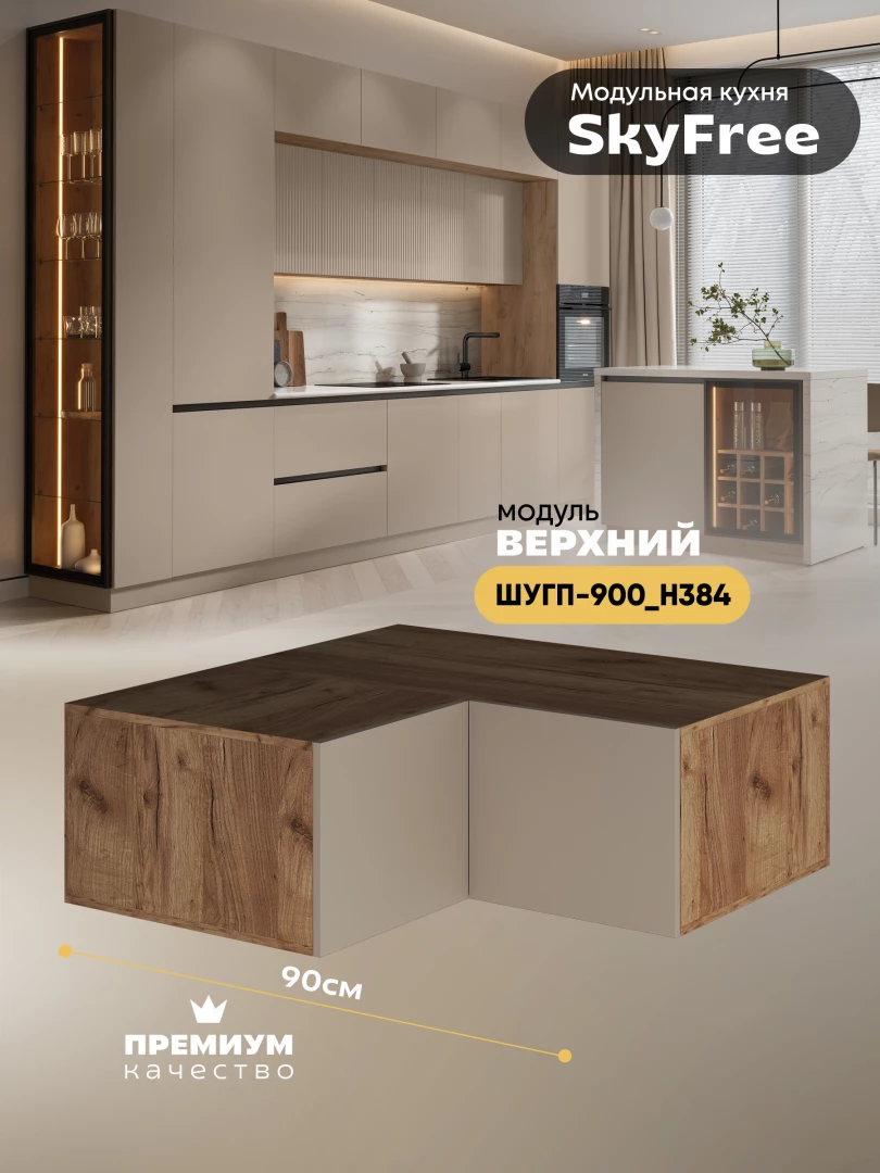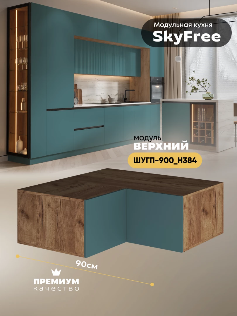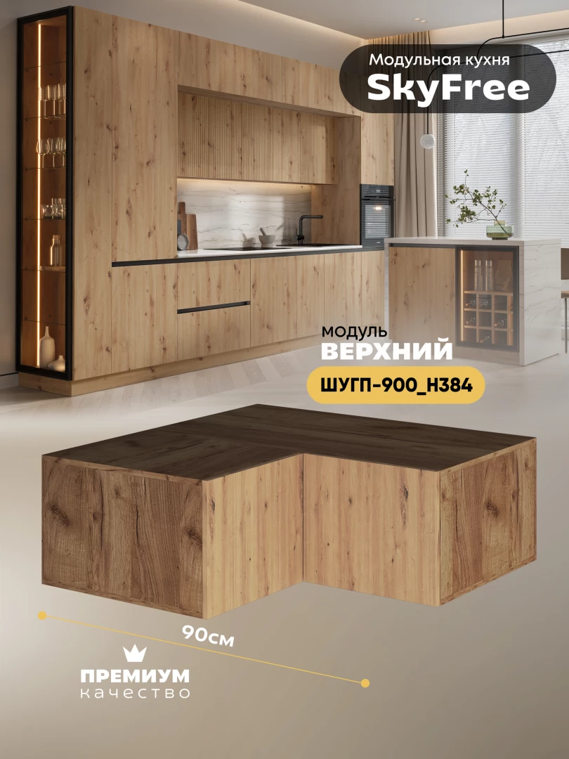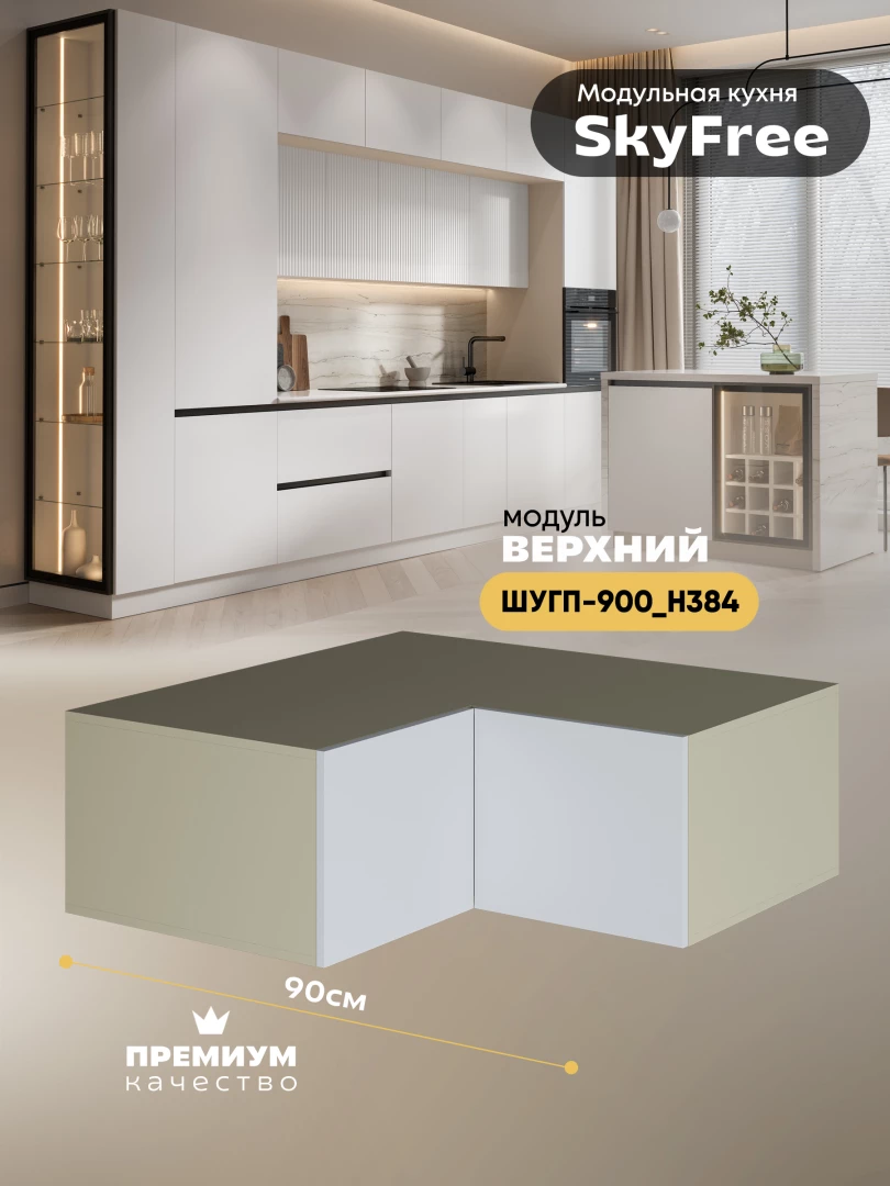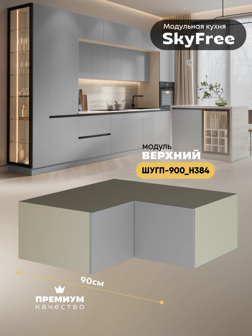 Кухонный навесной угловой модуль (антресоль) "СкайФри" ШУГП-900_Н384 Матовый