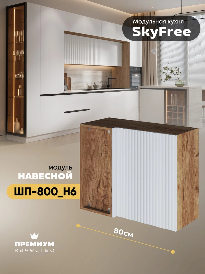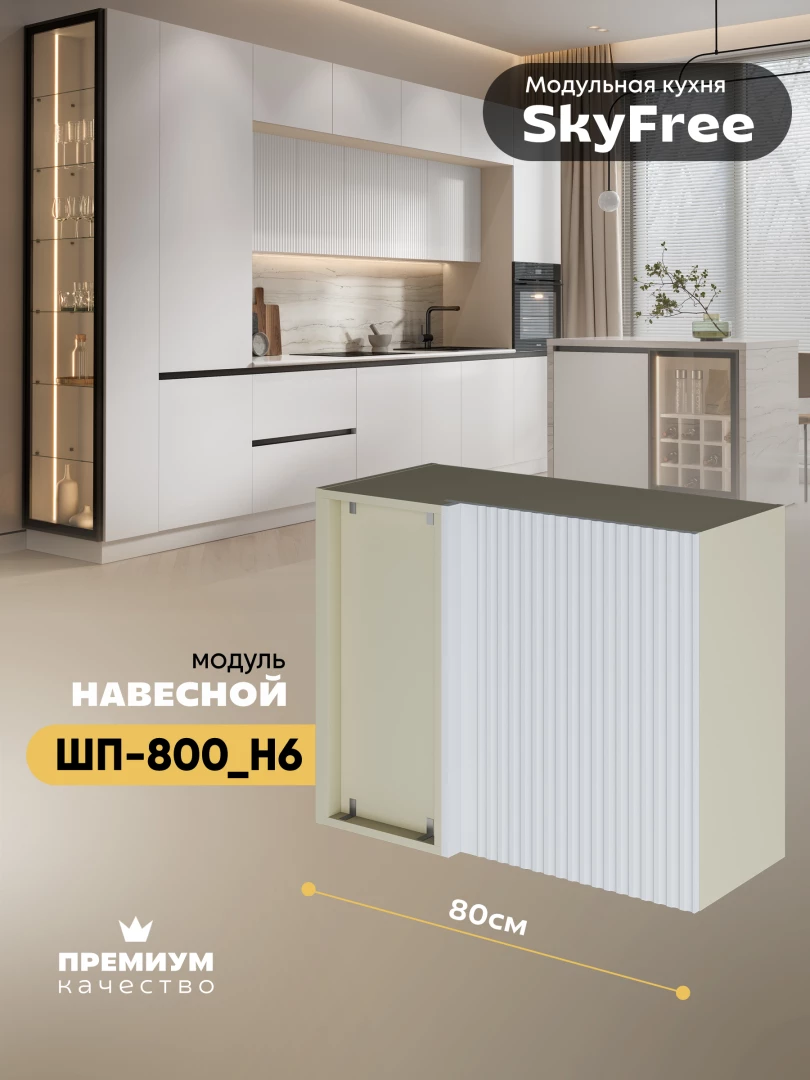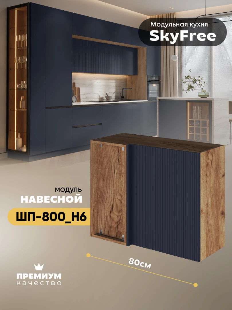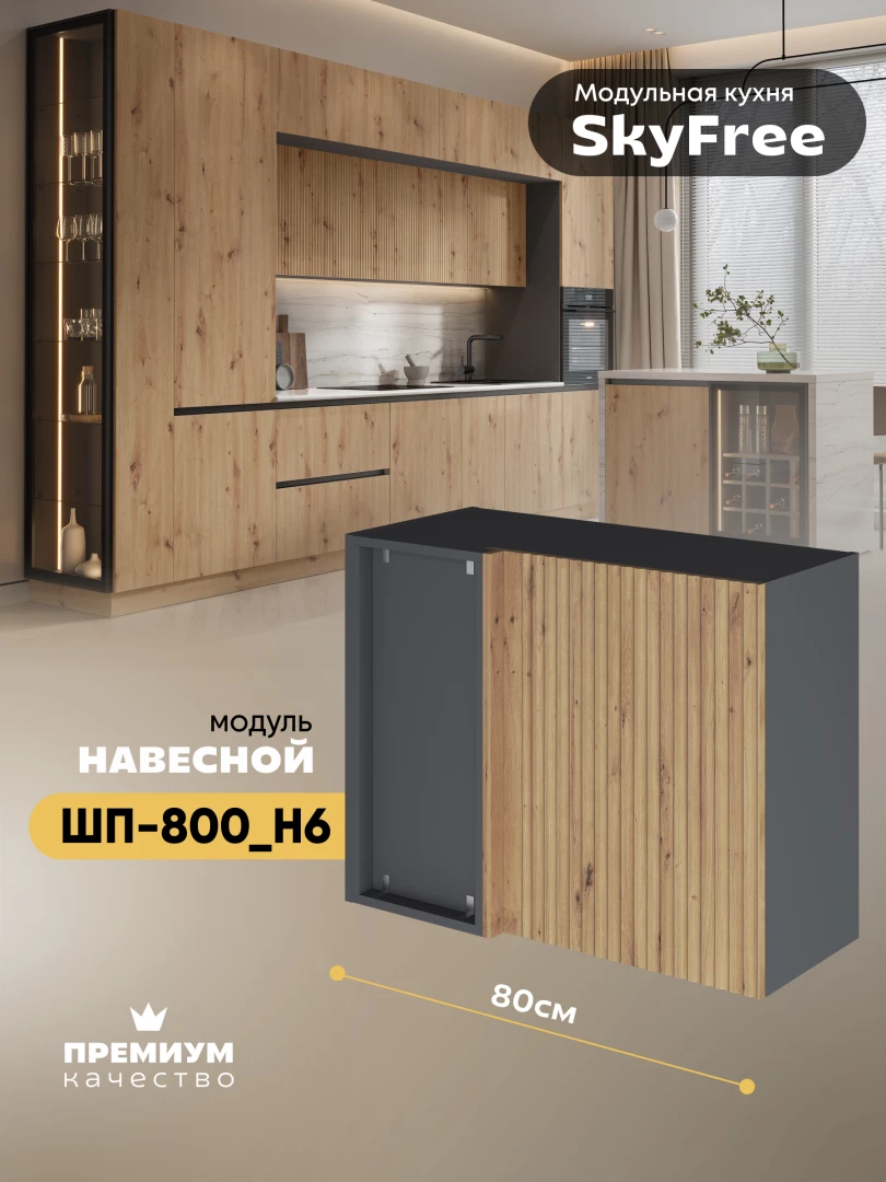 Кухонный навесной угловой модуль "СкайФри" ШП-800_Н6 Матовый