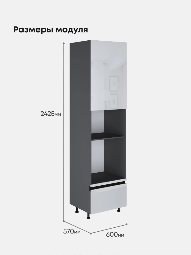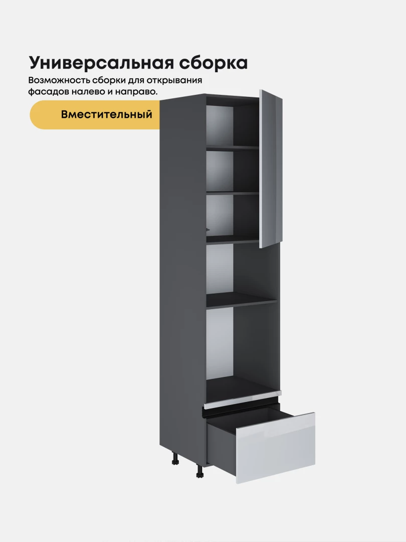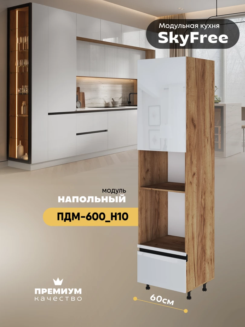 Шкаф-пенал для кухни с отделением под духовой шкаф и микроволновую печь "СкайФри" ПДМ-600_Н10 Глянцевый