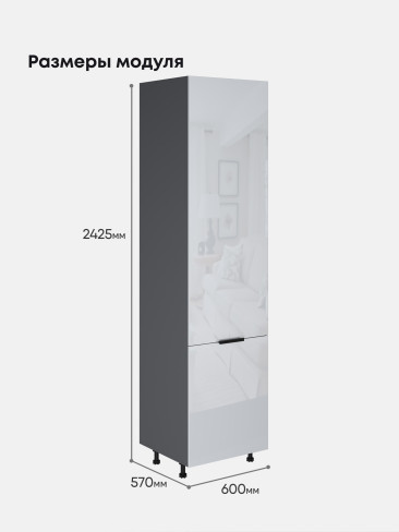 Шкаф-пенал для встроенного холодильника "СкайФри" ПХВ-600_Н10 Глянцевый