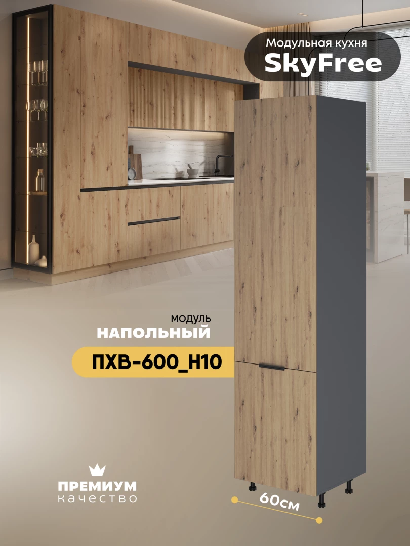 Шкаф-пенал для встроенного холодильника "СкайФри" ПХВ-600_Н10 Матовый