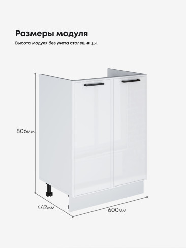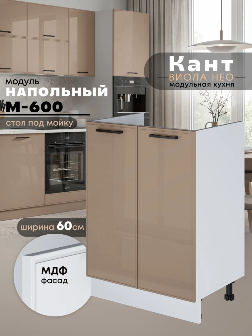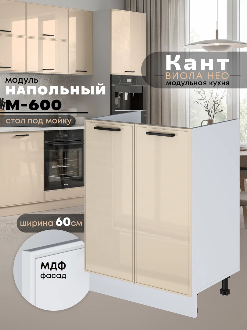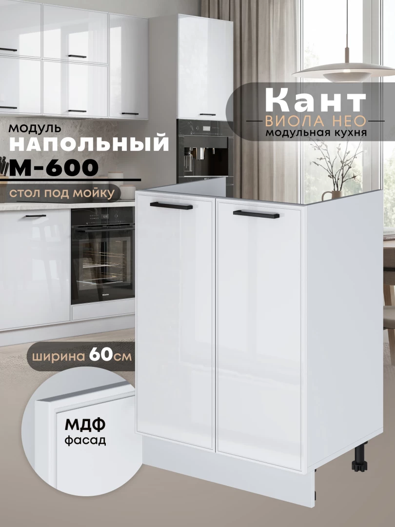 Кухонный модуль напольный под мойку (с двумя створками) Виола Нео Кант М-600 Глянцевый