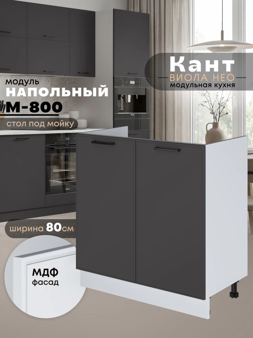 Кухонный модуль напольный под мойку (с двумя створками) Виола Нео Кант М-800 Матовый