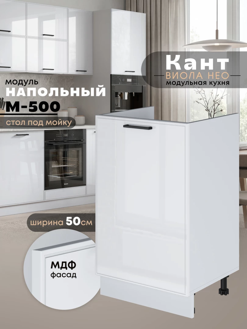Кухонный модуль напольный под мойку (с одной створкой) Виола Нео Кант М-500 Глянцевый