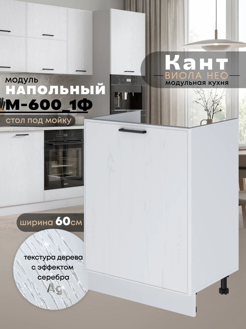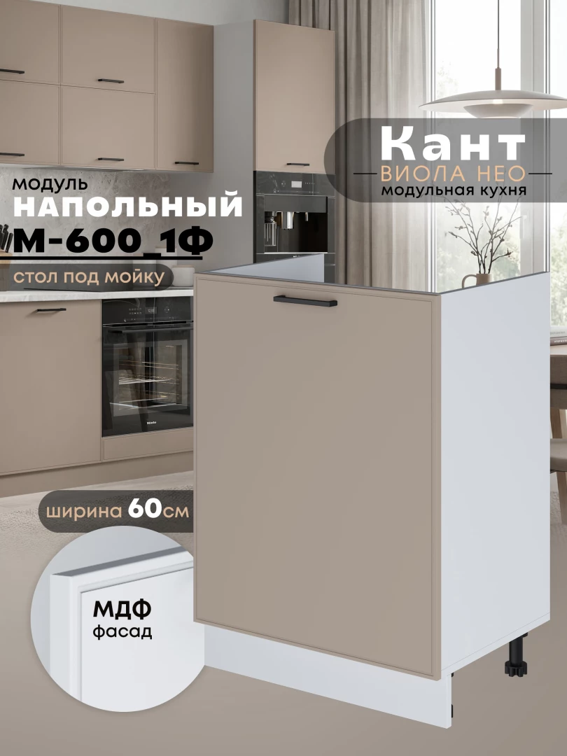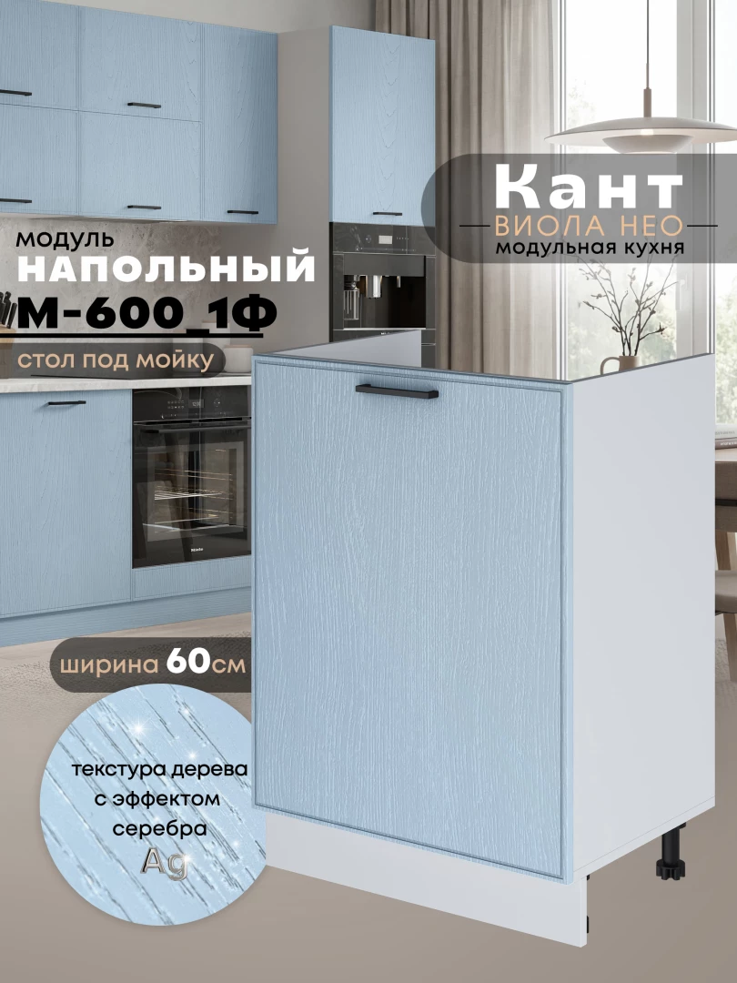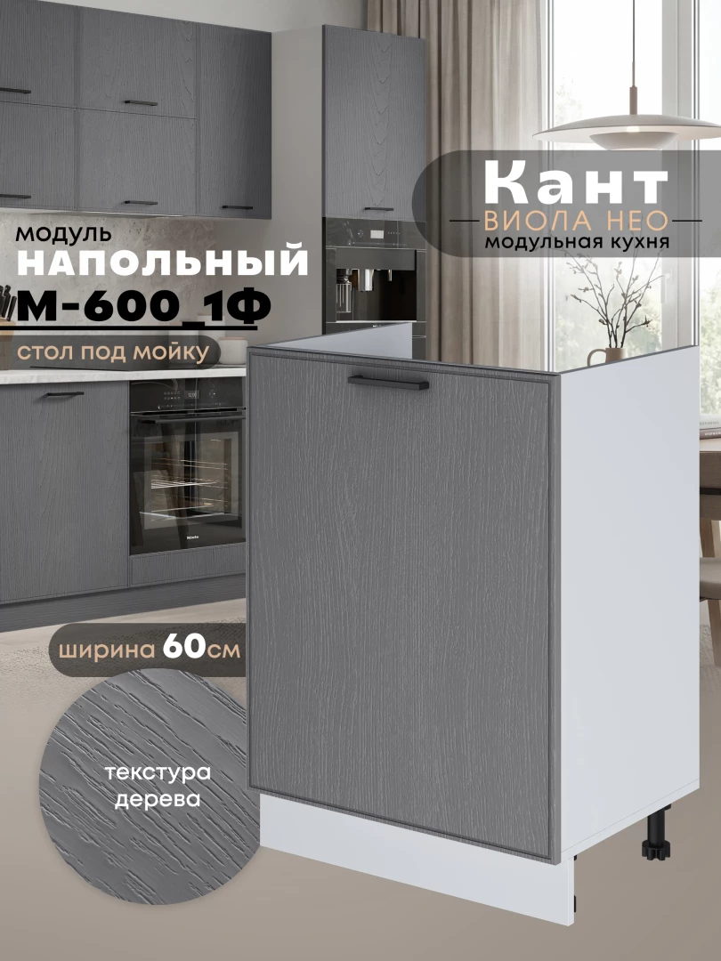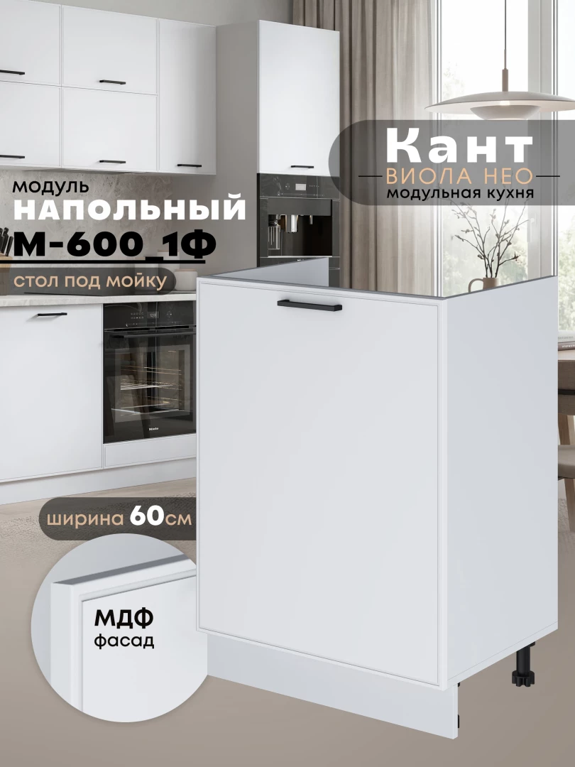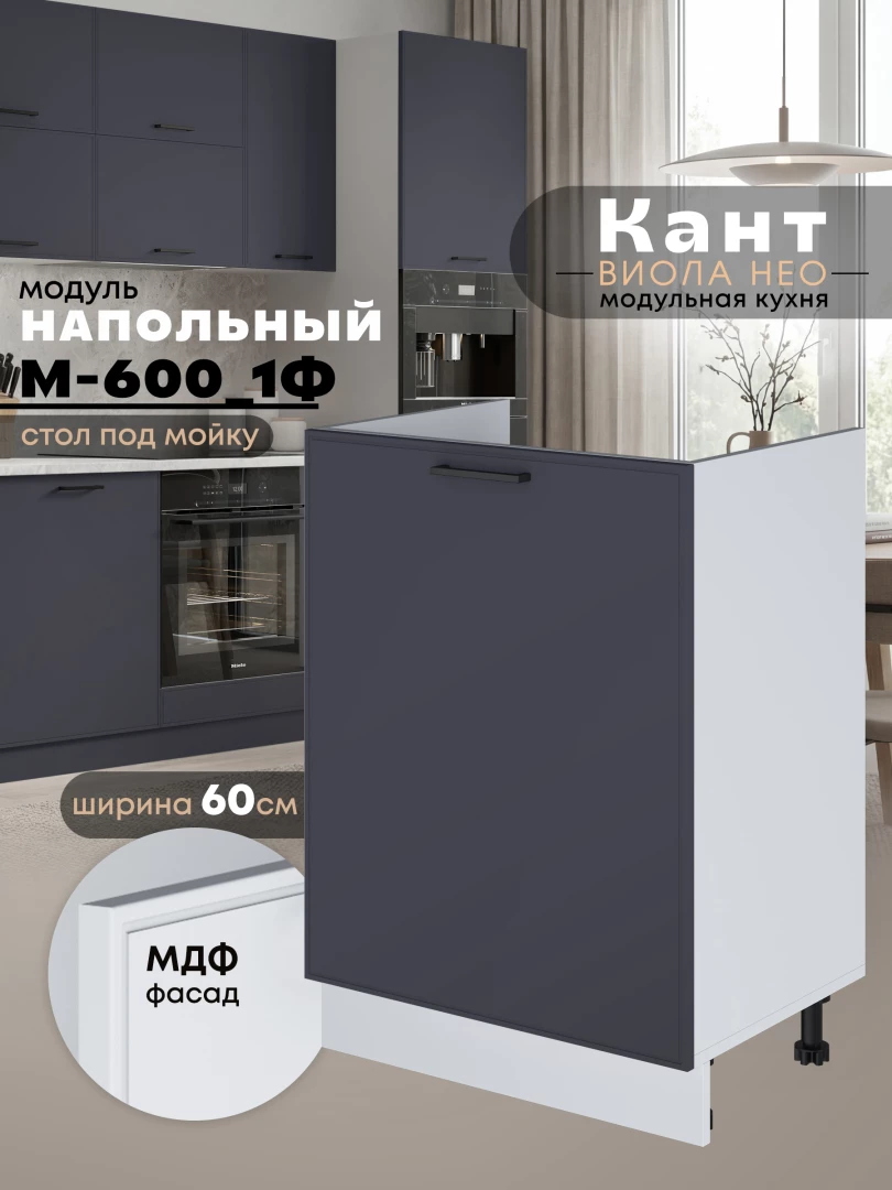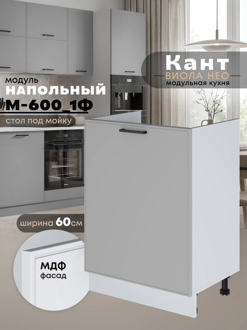 Кухонный модуль напольный под мойку (с одной створкой) Виола Нео Кант М-600_1Ф Матовый