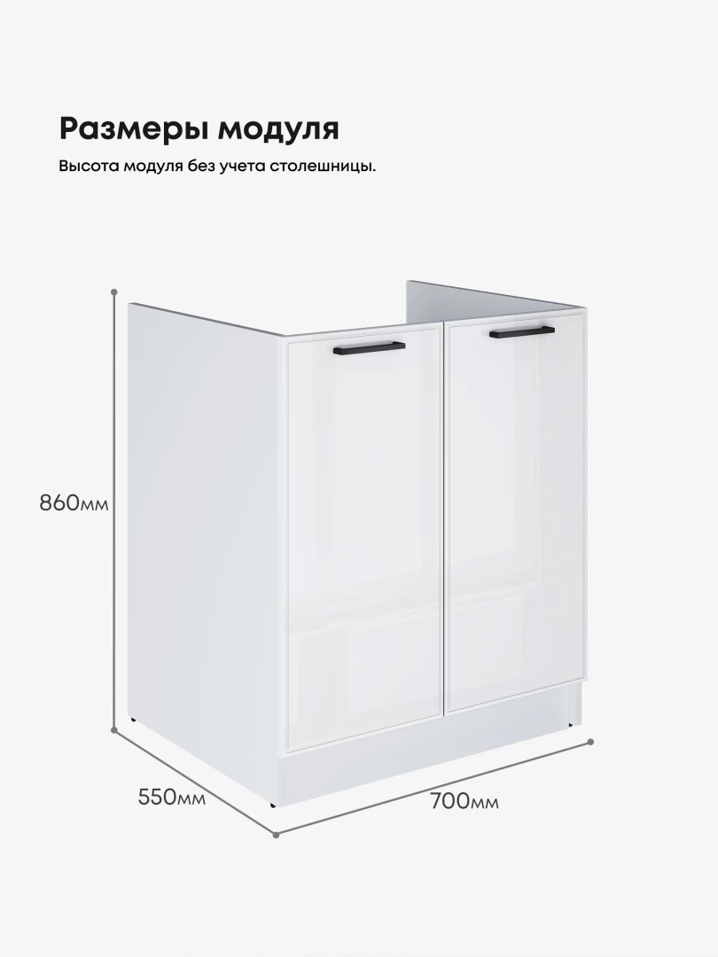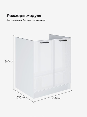 Кухонный модуль напольный под стиральную машину (с двумя створками) Виола Нео Кант СМ-700 Глянцевый