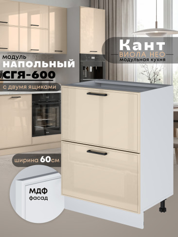 Кухонный модуль напольный с двумя выдвижными ящиками Виола Нео Кант СГЯ-600 Глянцевый