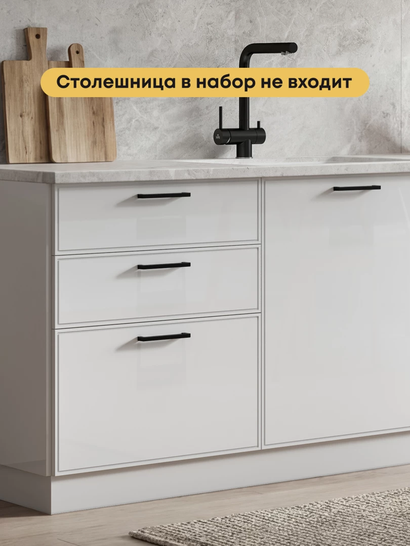 Ручка-скоба С-42 изготовлена из прочного пластика, что обеспечивает долговечность и надежность в использовании. Черный матовый цвет покрытия придает изделию стильный и современный вид. Фасады представлены в 15 цветовых решениях, что позволит органично вписать данную кухню в любой современный дизайн.