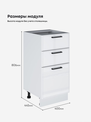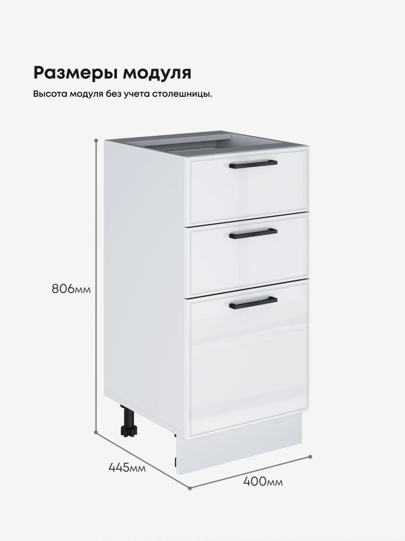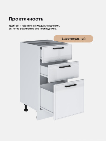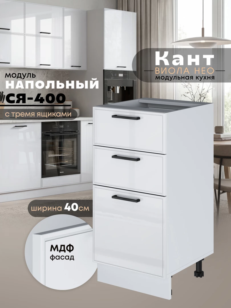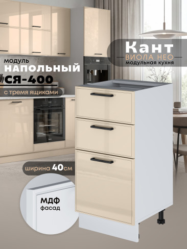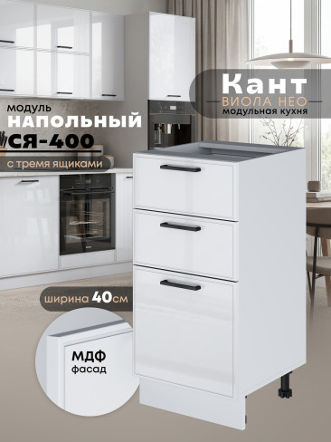 Кухонный модуль напольный с тремя выдвижными ящиками Виола Нео Кант С3Я-400 Глянцевый