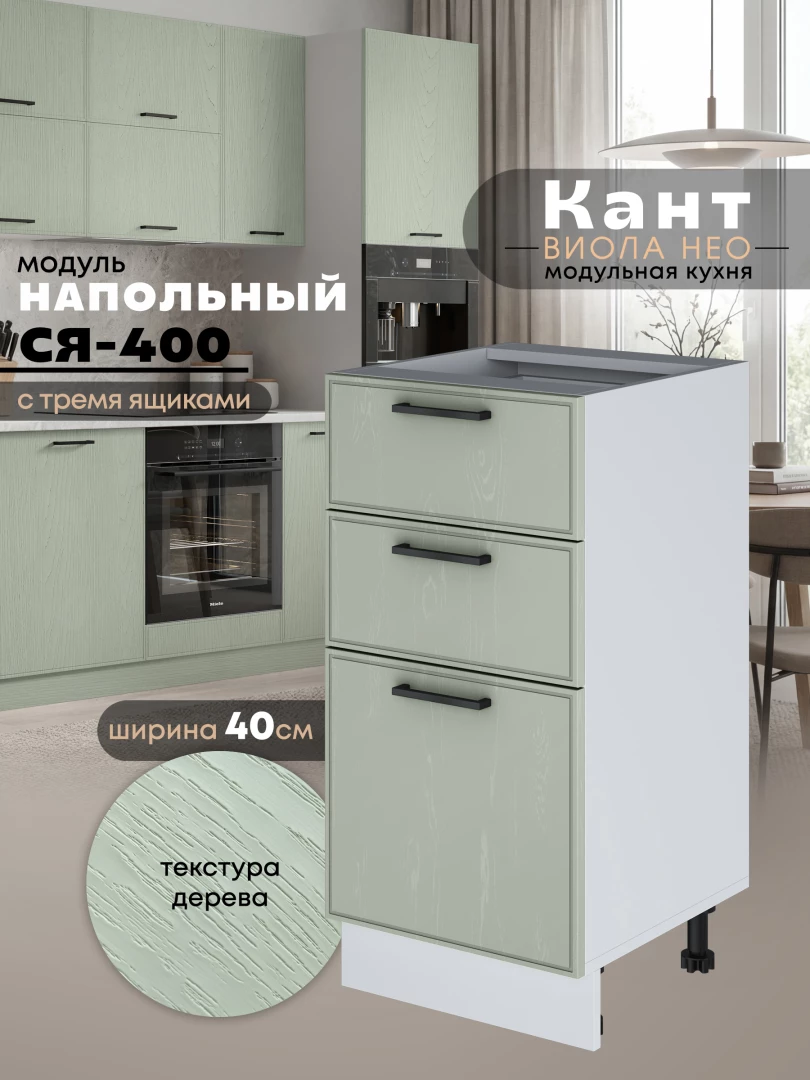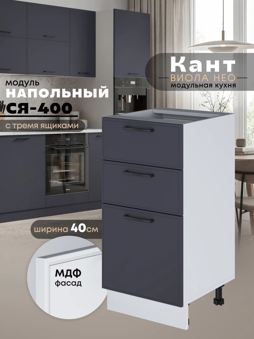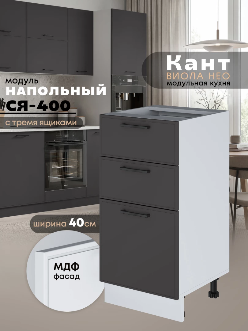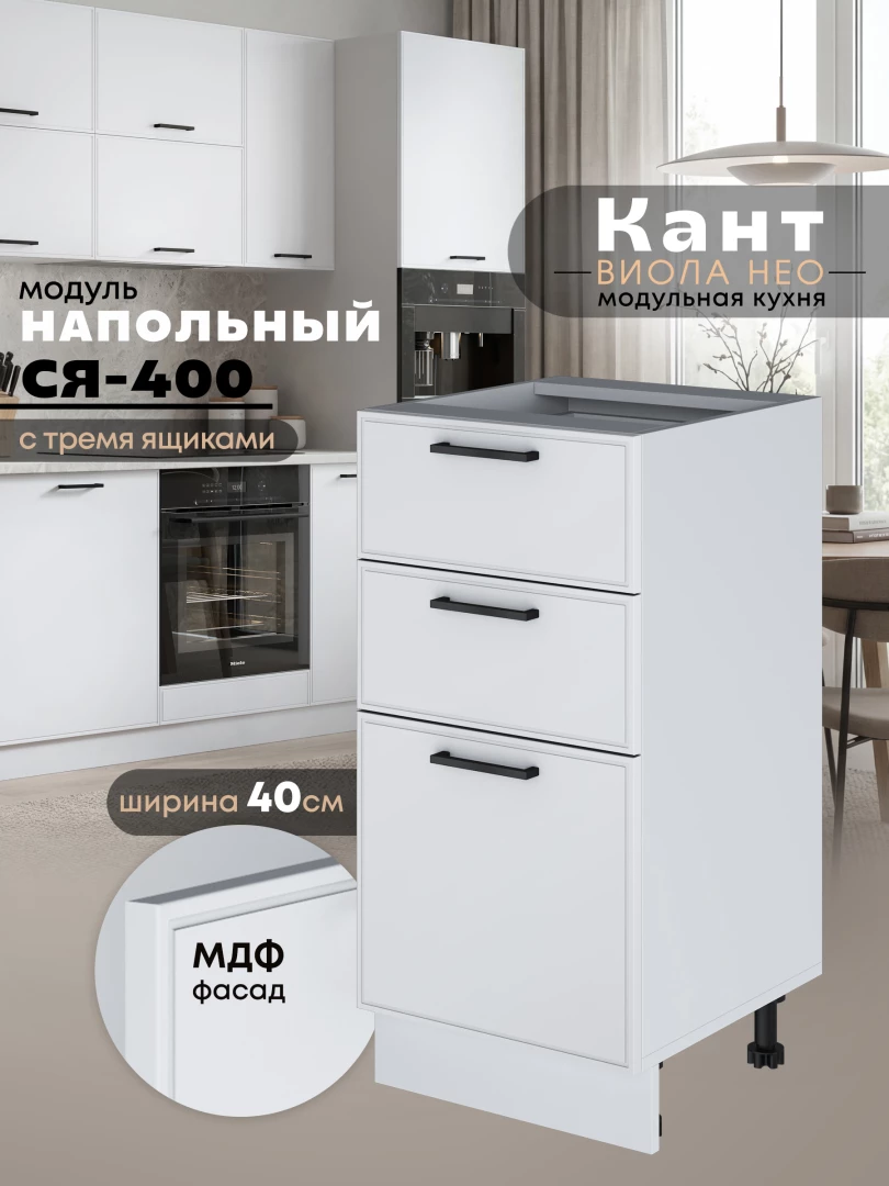 Кухонный модуль напольный с тремя выдвижными ящиками Виола Нео Кант С3Я-400 Матовый