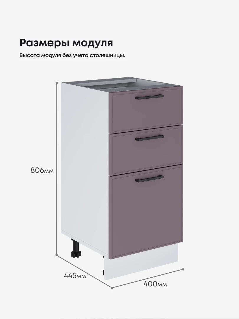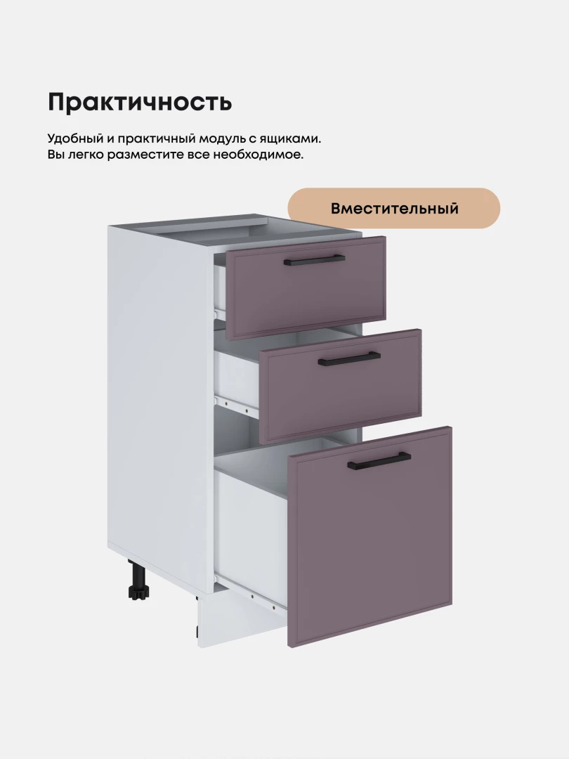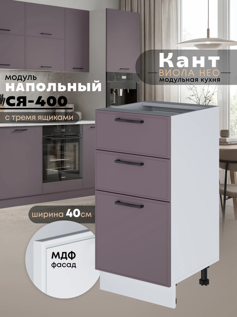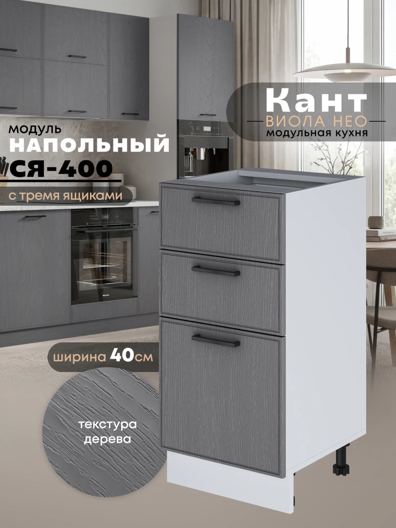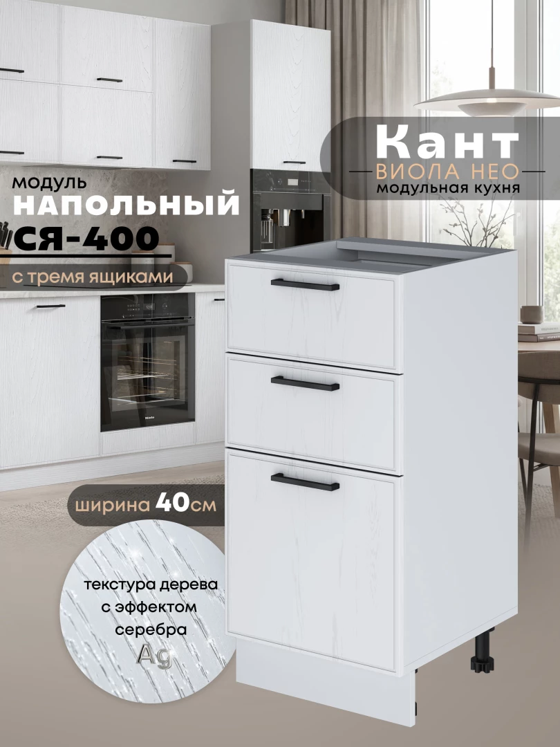 Кухонный модуль напольный с тремя выдвижными ящиками Виола Нео Кант С3Я-400 Матовый