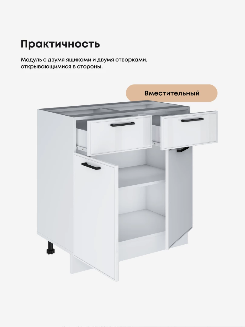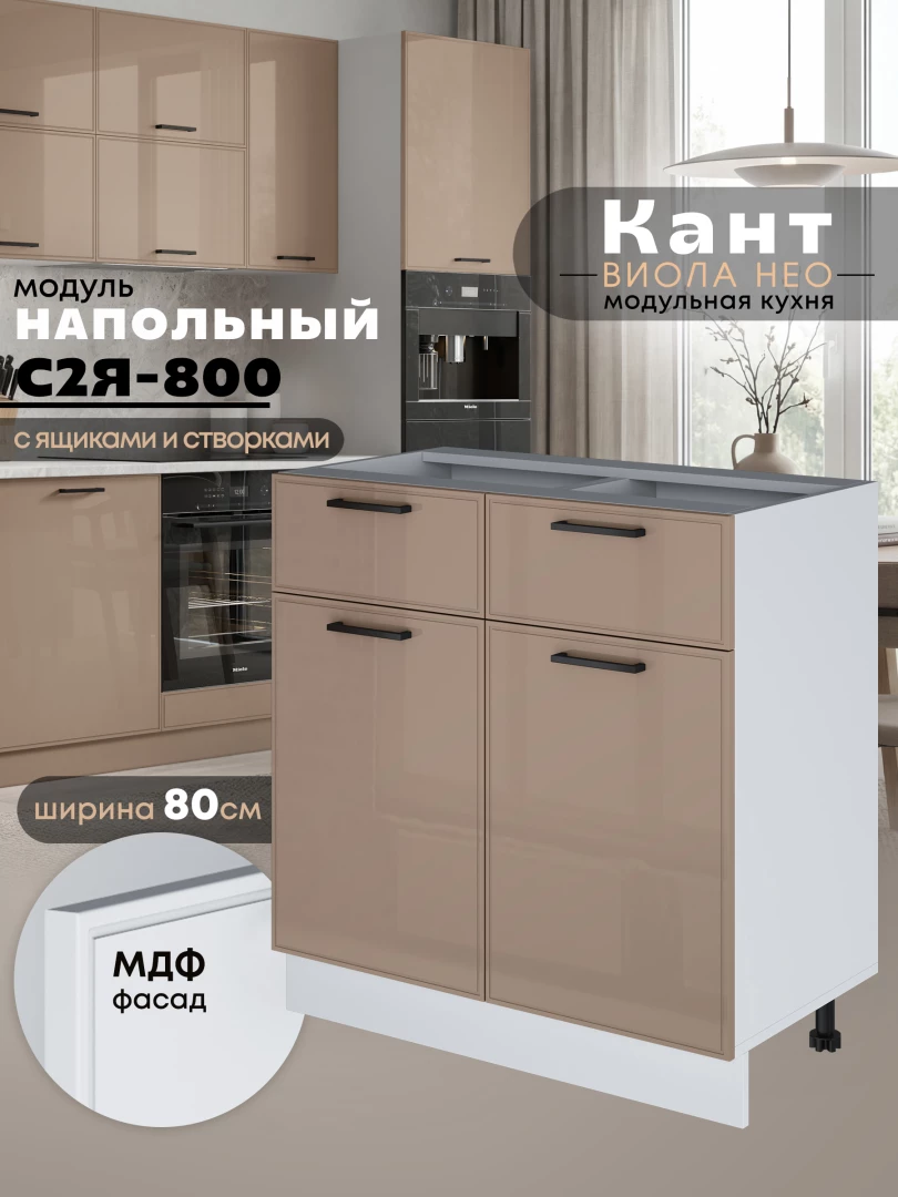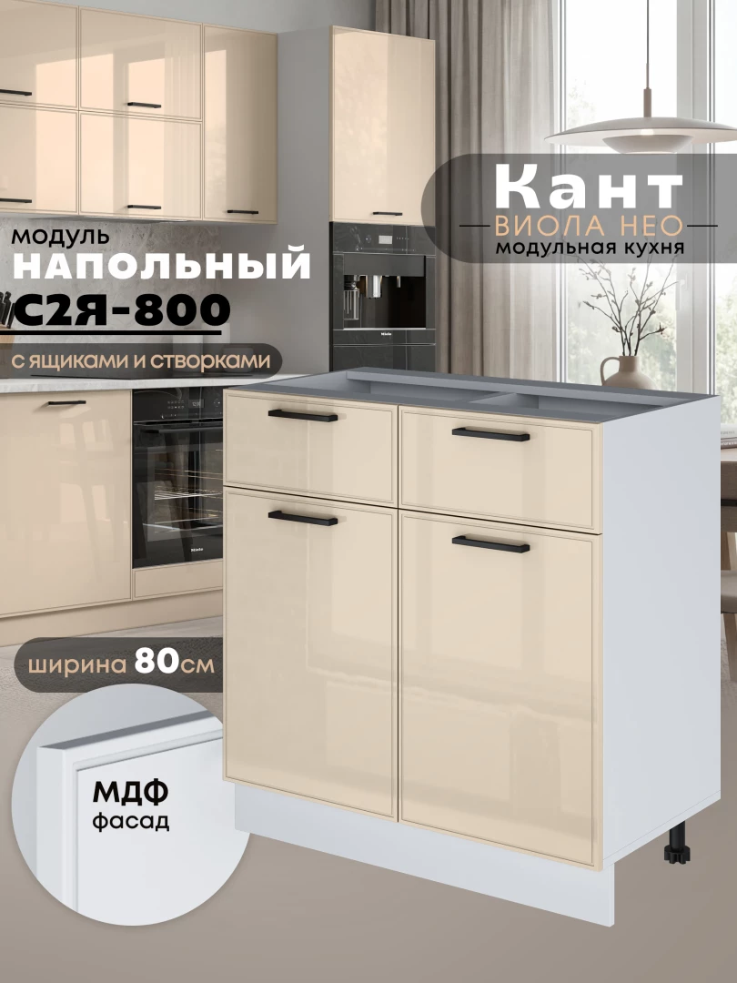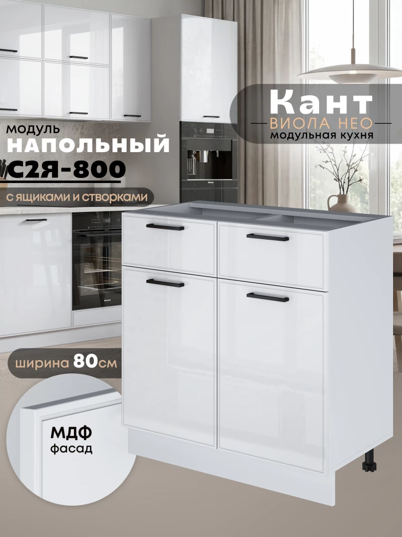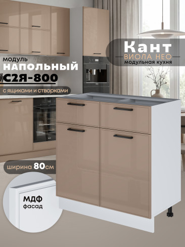 Кухонный модуль напольный с выдвижными ящиками и створками Виола Нео Кант С2Я-800 Глянцевый