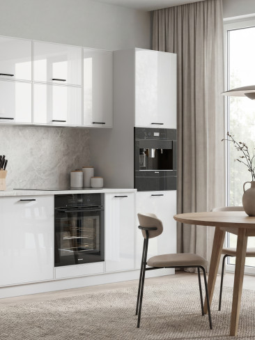 Ручка-скоба С-42 изготовлена из прочного пластика, что обеспечивает долговечность и надежность в использовании. Черный матовый цвет покрытия придает изделию стильный и современный вид. Фасады представлены в 15 цветовых решениях, что позволит органично вписать данную кухню в любой современный дизайн.