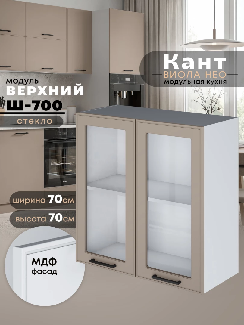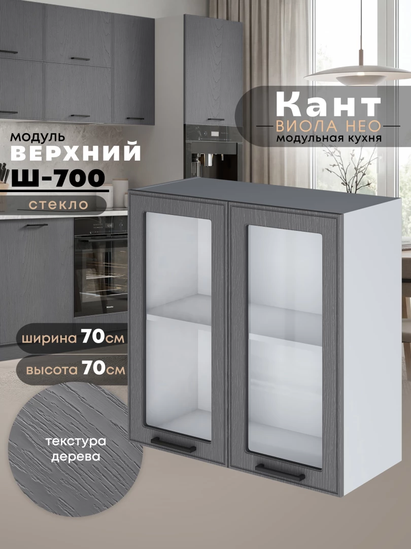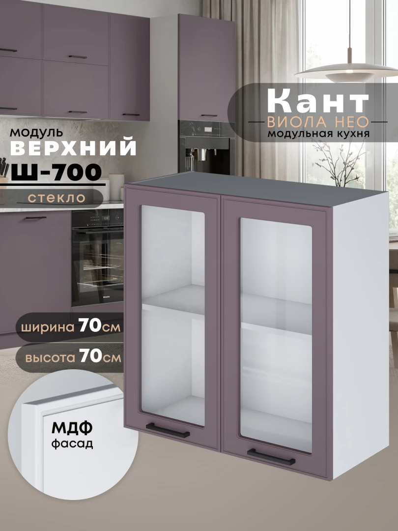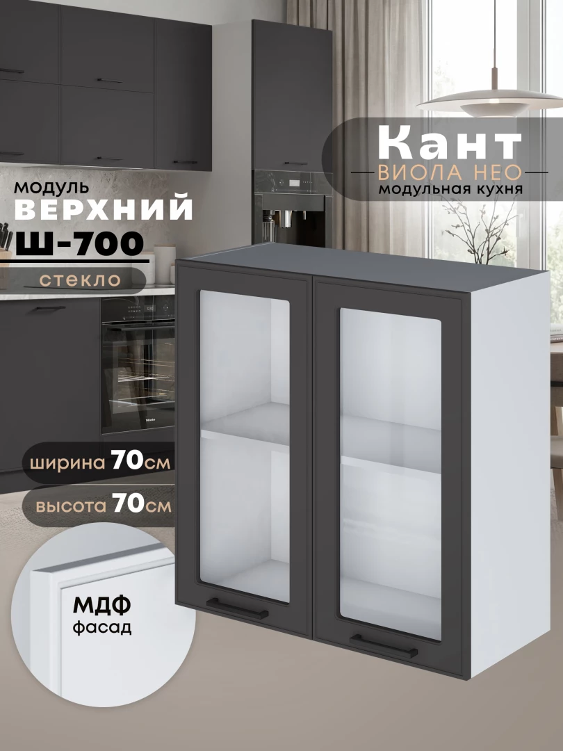 Кухонный модуль навесной с двумя створками Виола Нео Кант Ш-700-стекло Матовый