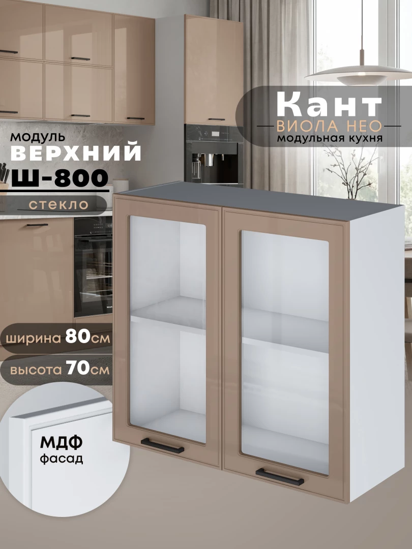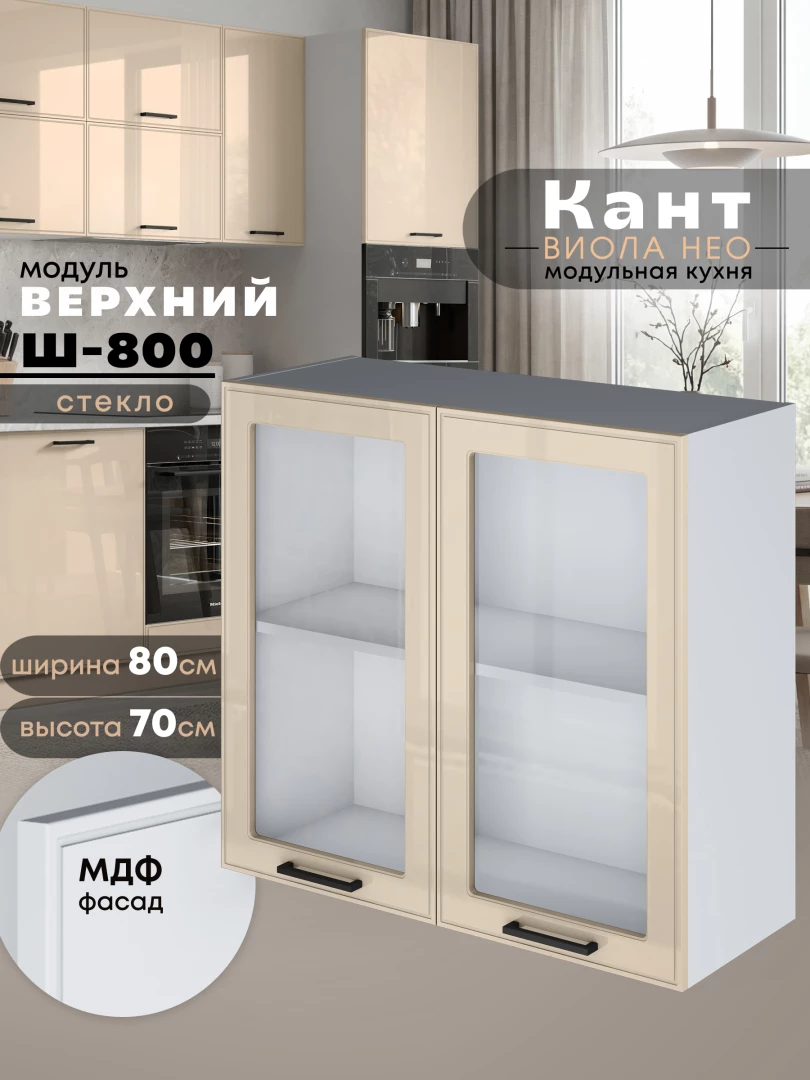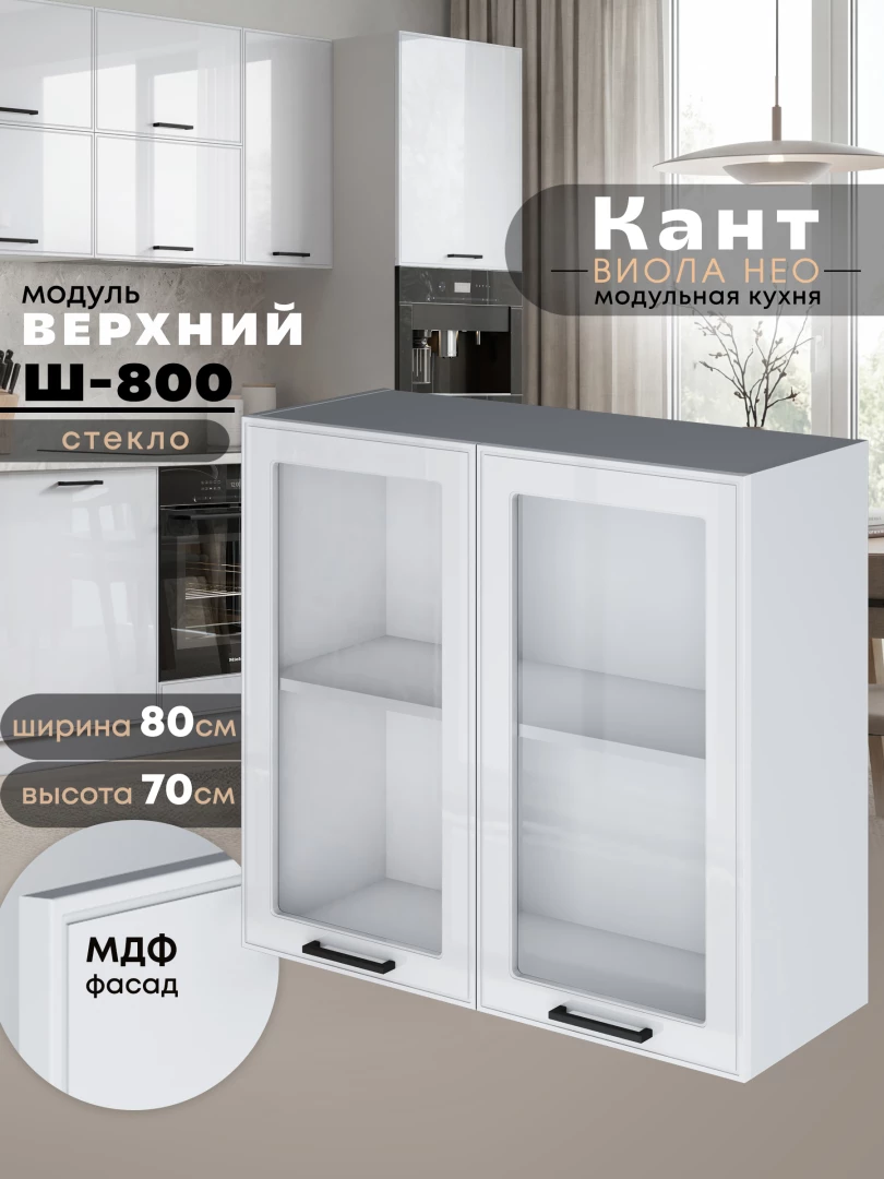 Кухонный модуль навесной с двумя створками Виола Нео Кант Ш-800-стекло Глянцевый