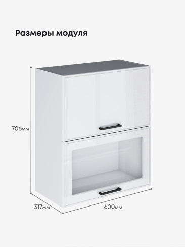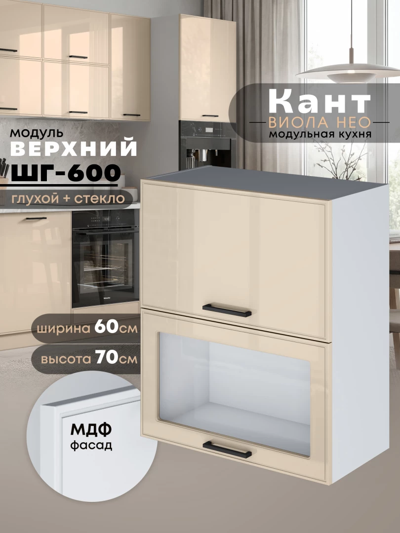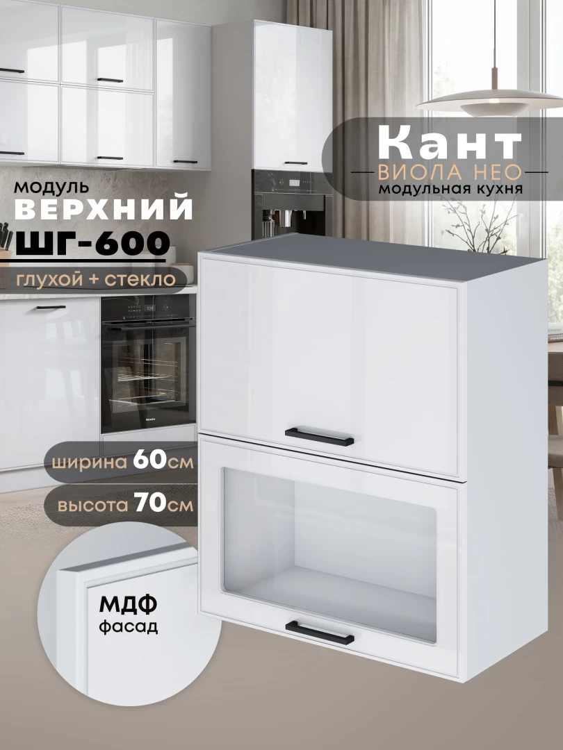 Кухонный модуль навесной с двумя створками Виола Нео Кант ШГ-600 (глухой/стекло) Глянцевый