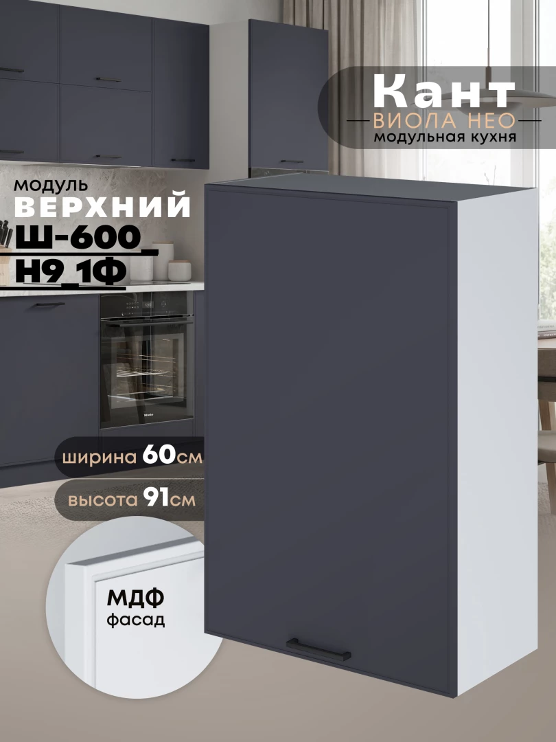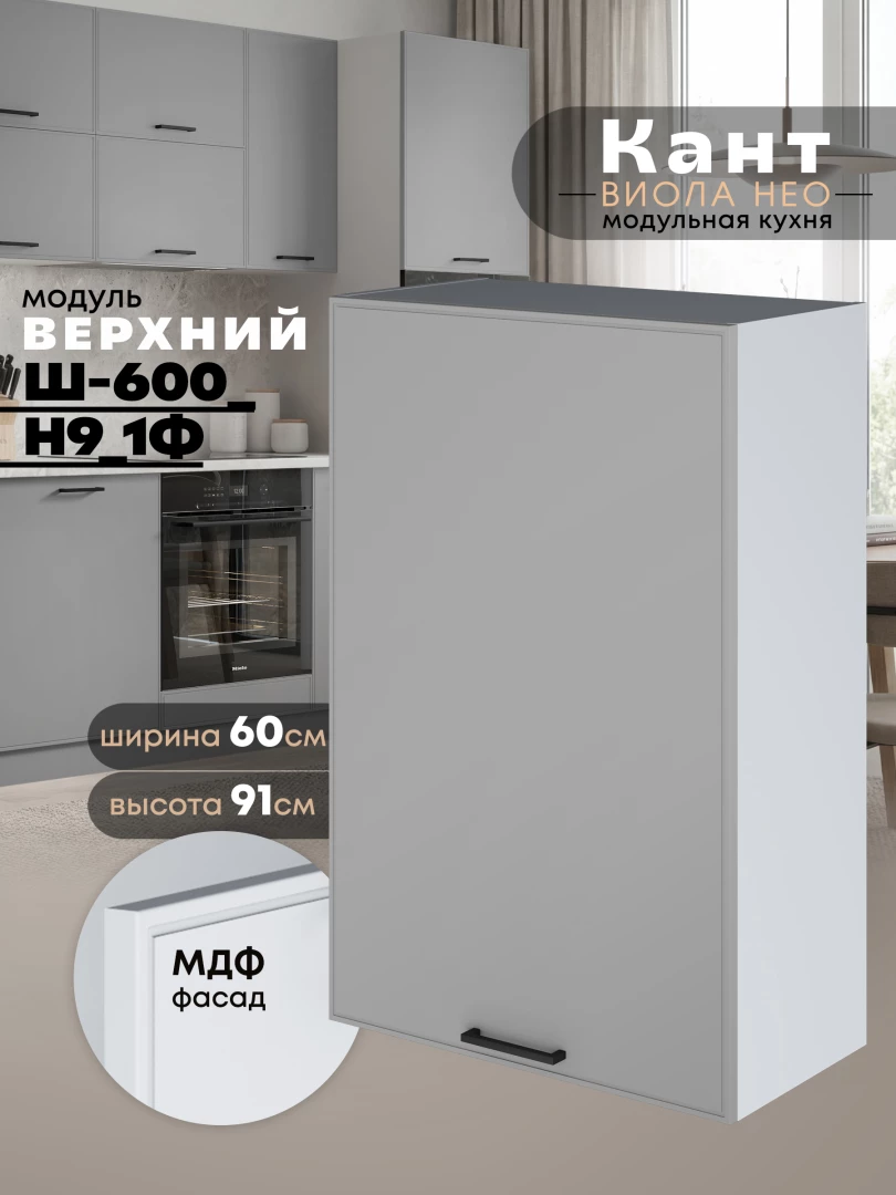 Кухонный модуль навесной с одной створкой Виола Нео Кант Ш-600_1Ф(Н9) Матовый