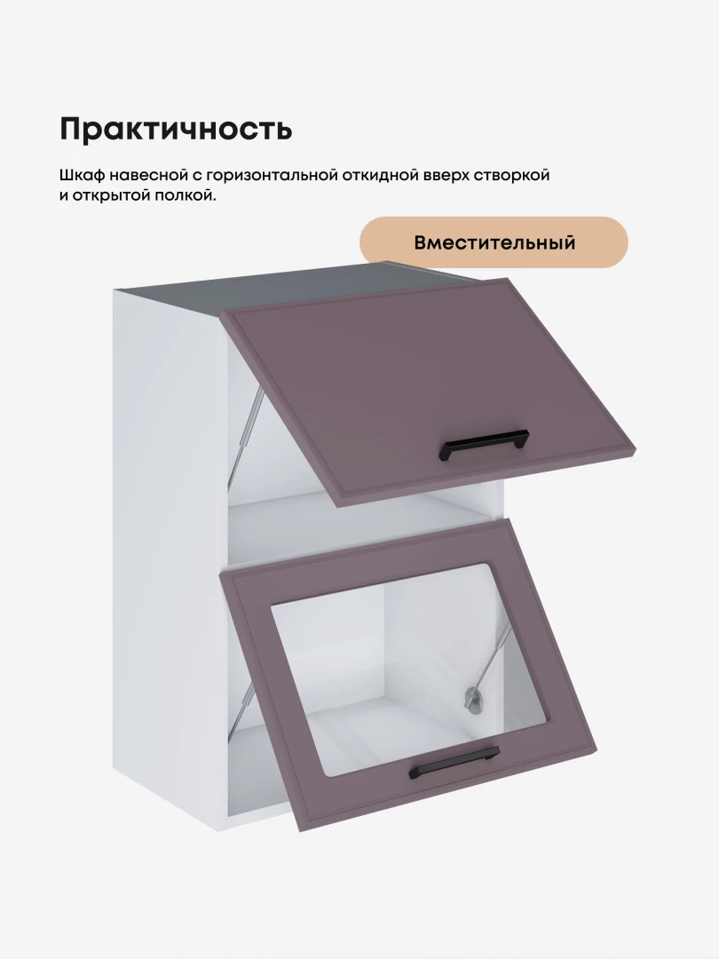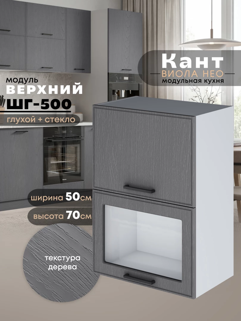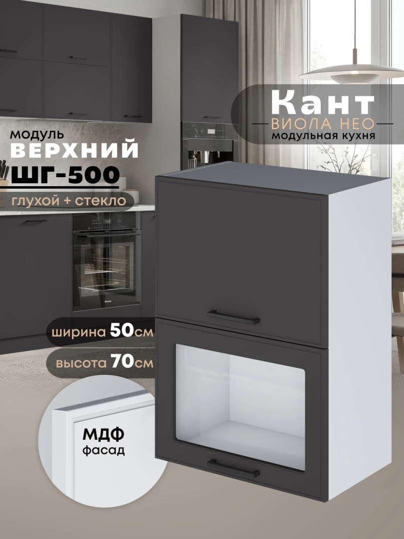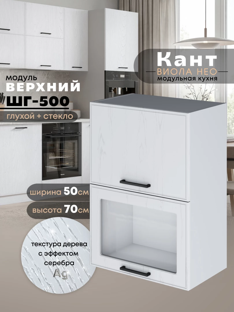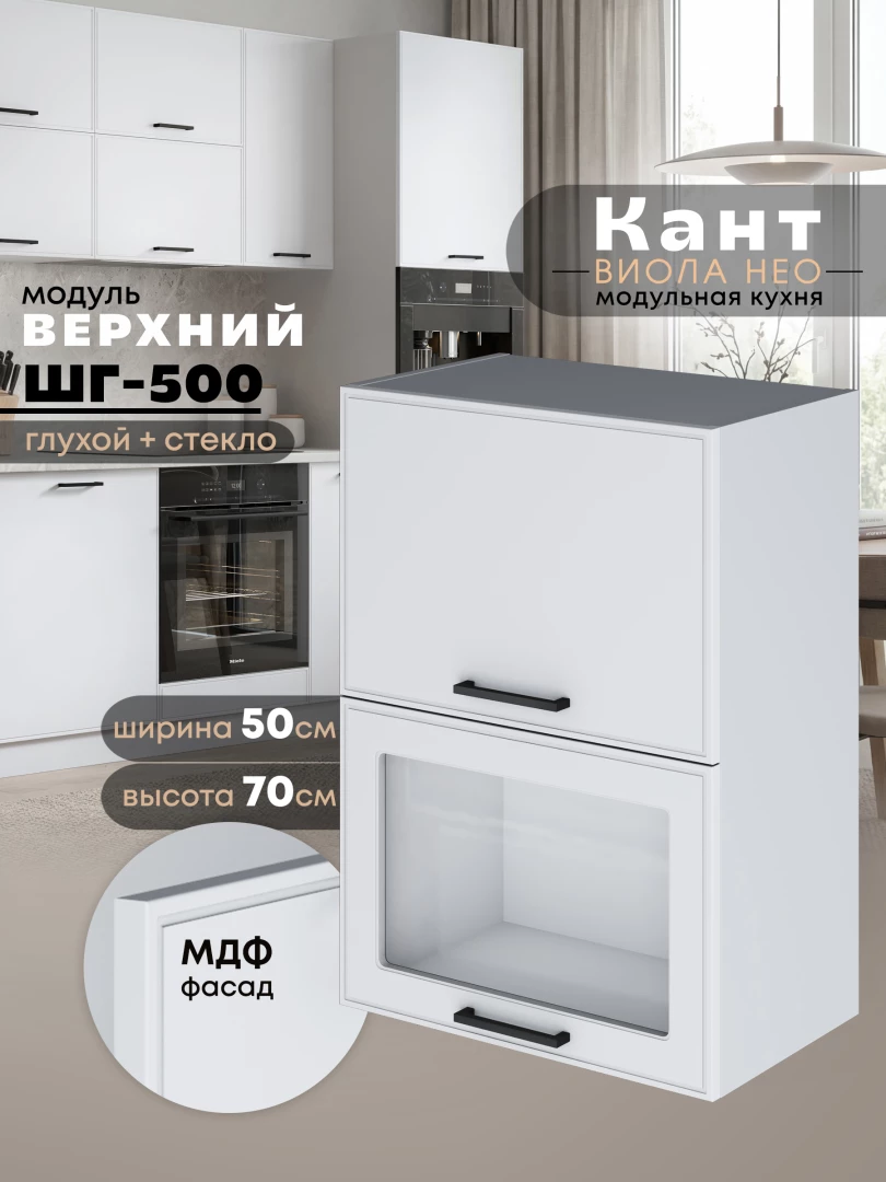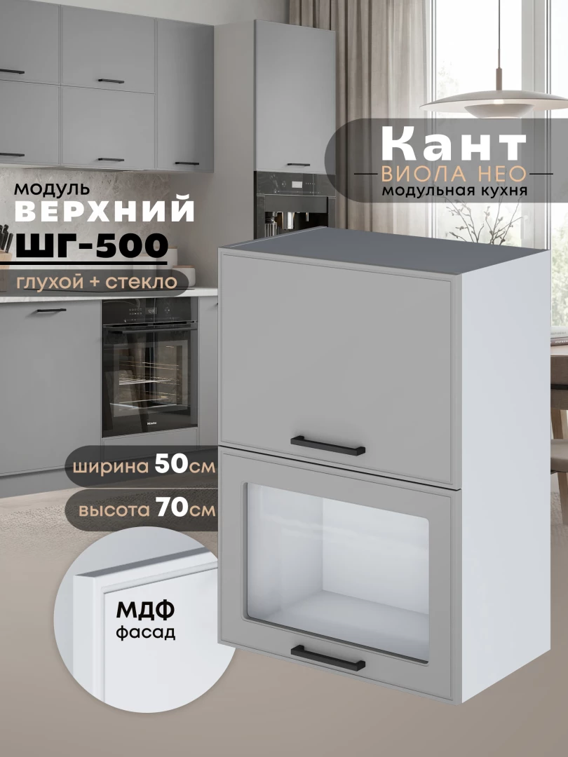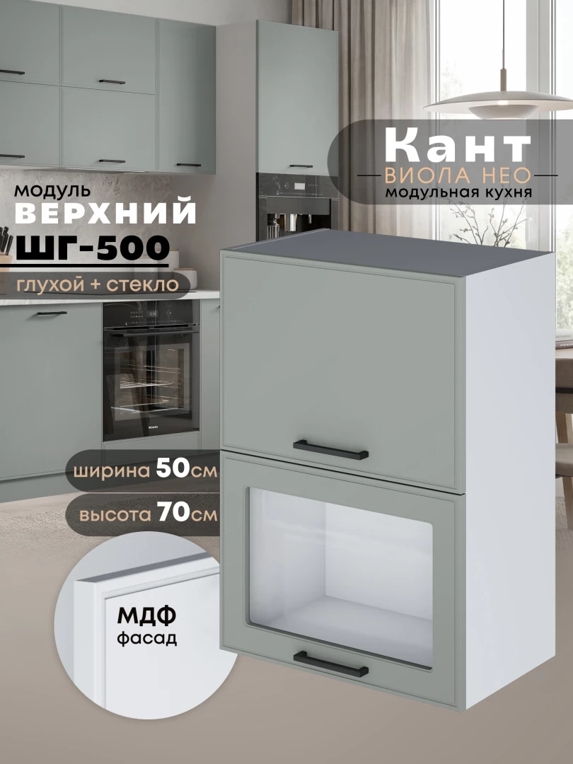 Кухонный модуль навесной с откидными створками Виола Нео Кант ШГ-500 (глухой/стекло) Матовый
