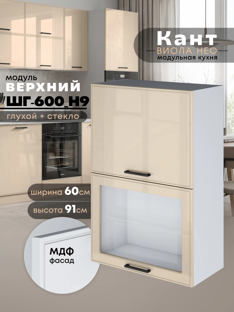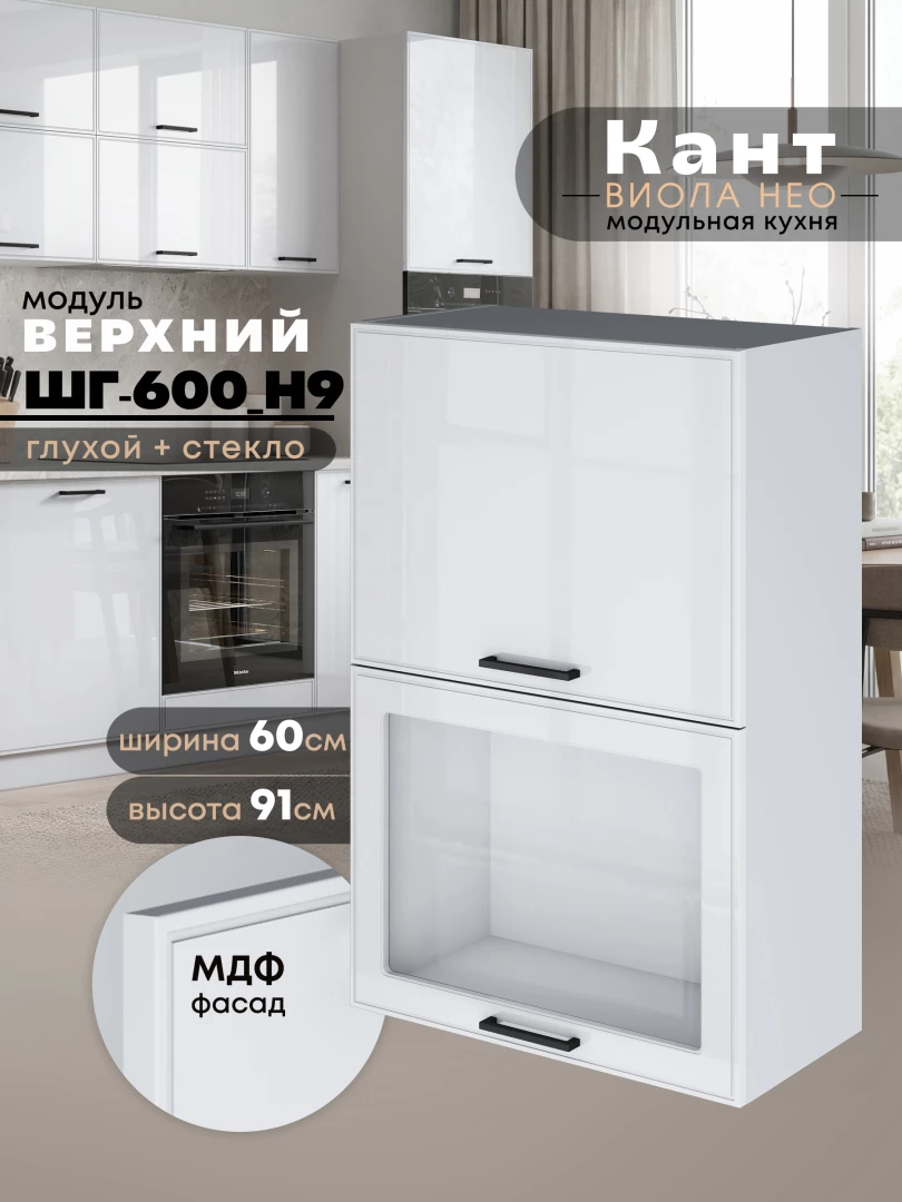 Кухонный модуль навесной с откидными створками Виола Нео Кант ШГ-600(Н9) (глухой/стекло) Глянцевый