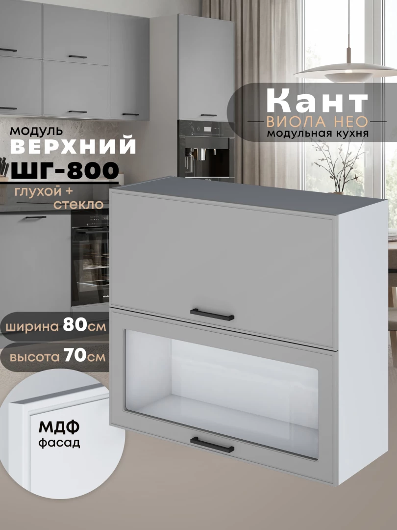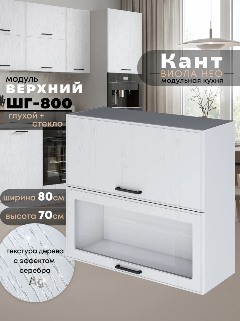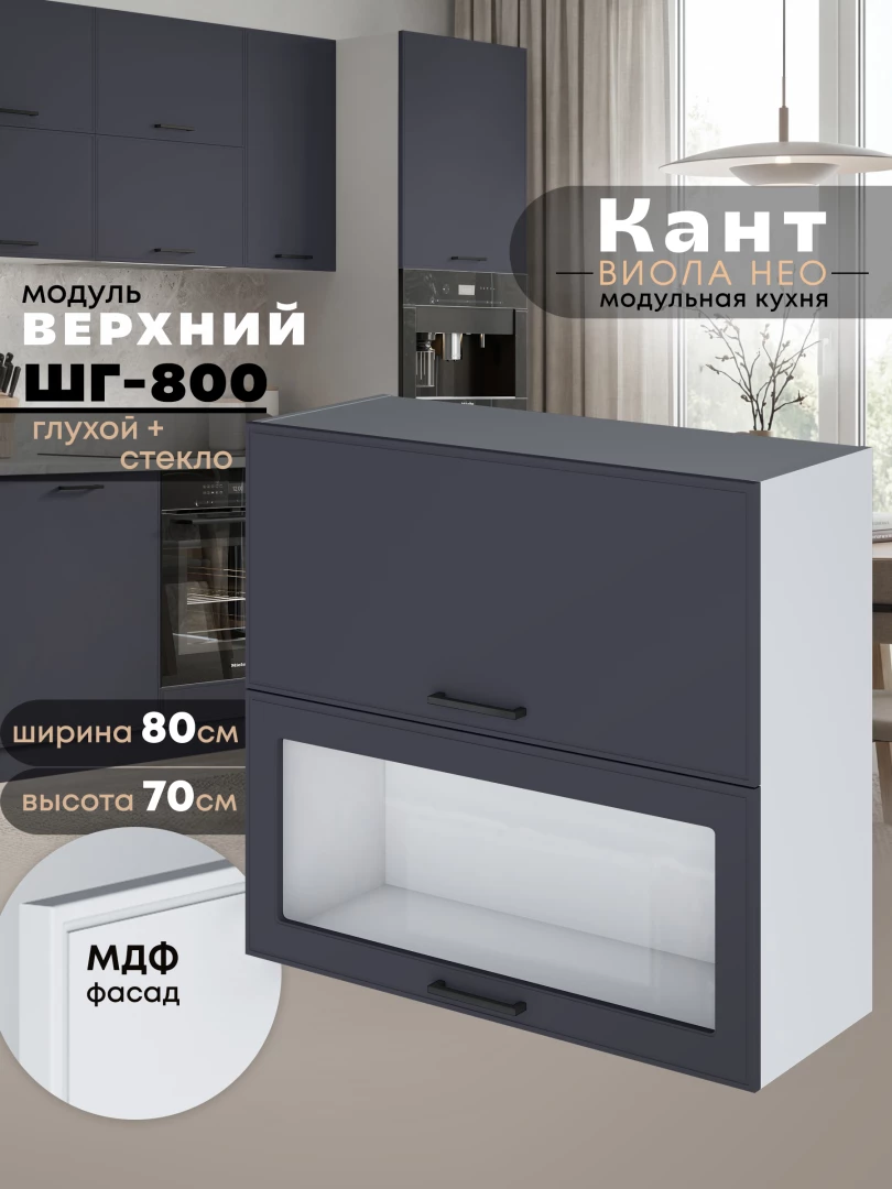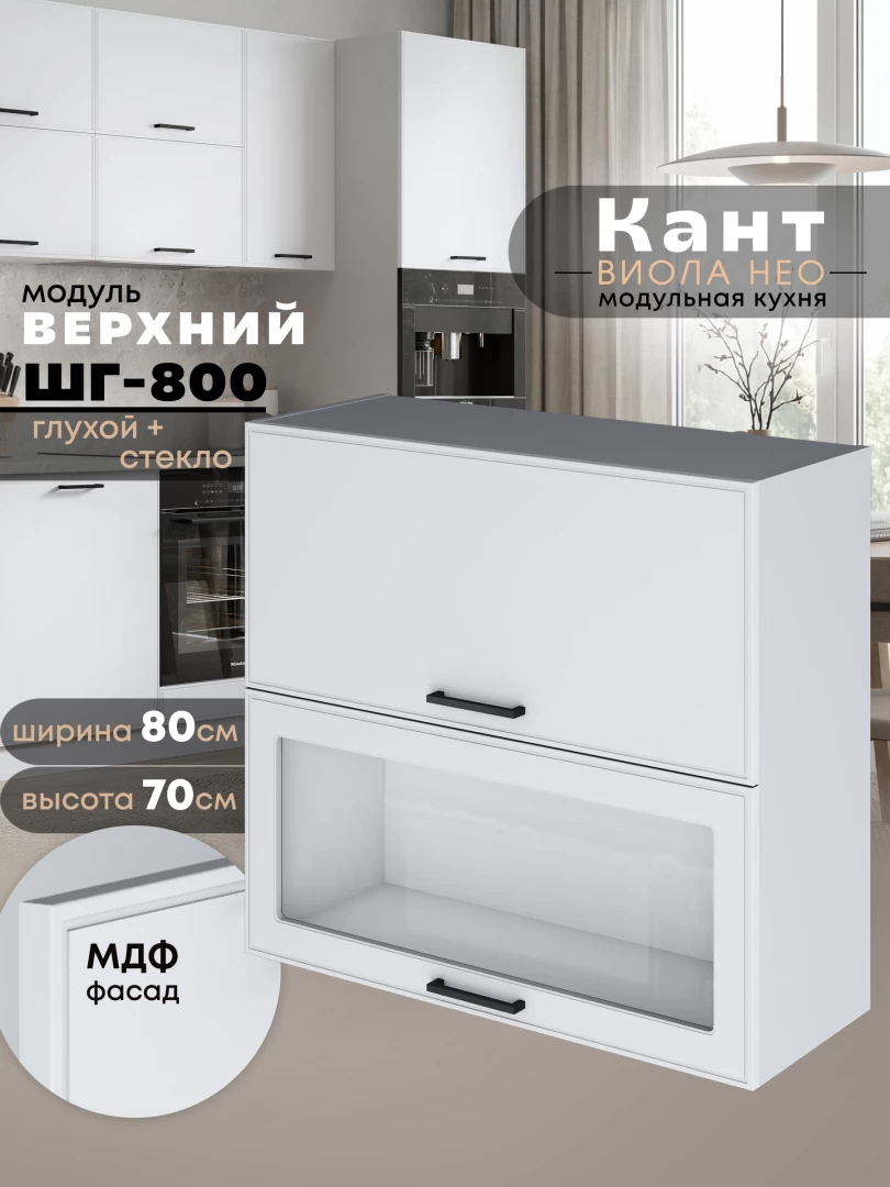 Кухонный модуль навесной с откидными створками Виола Нео Кант ШГ-800 (глухой/стекло) Матовый