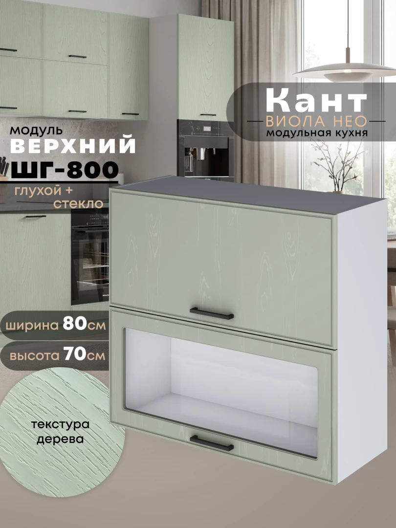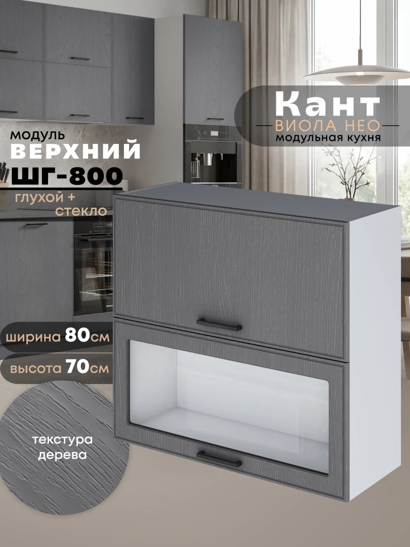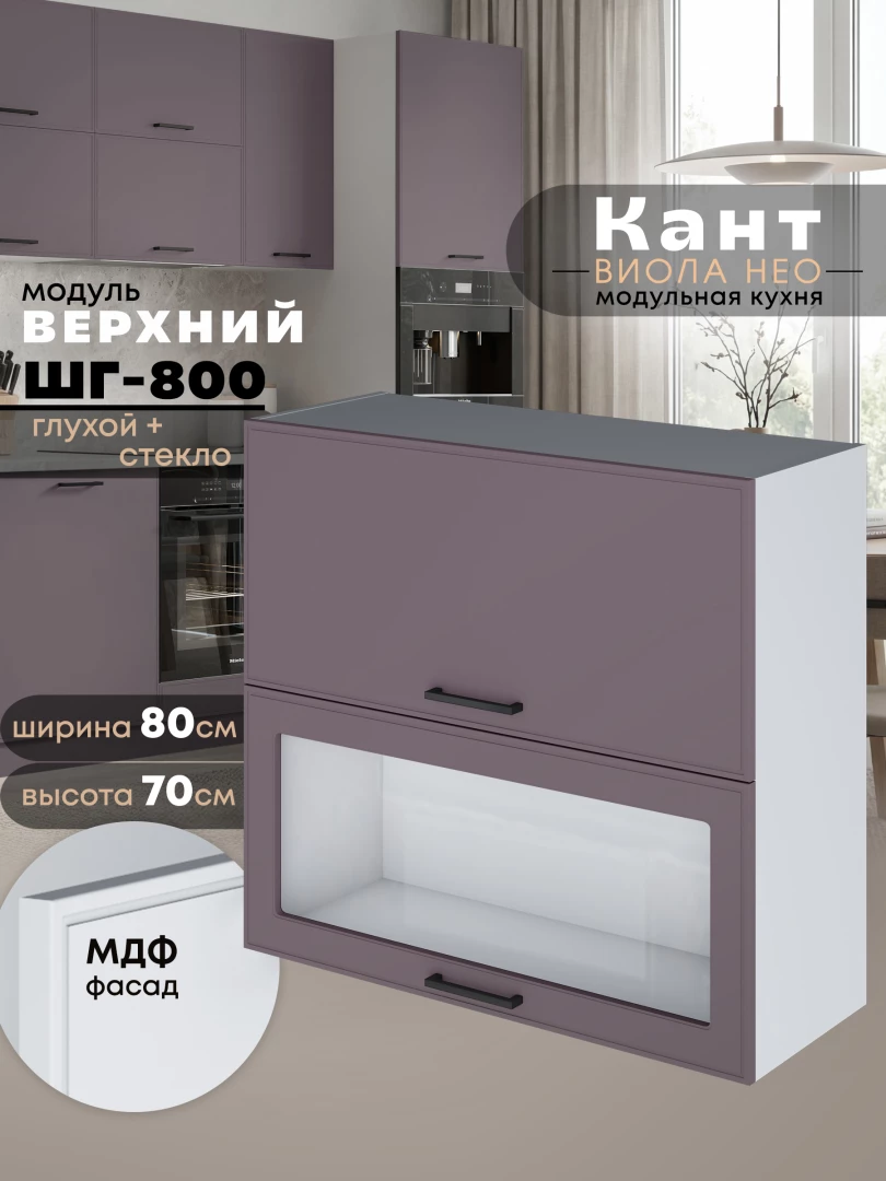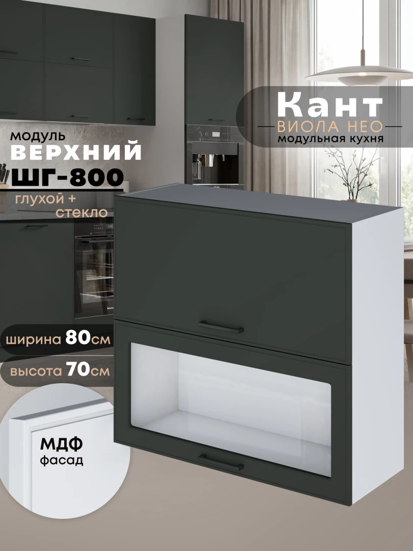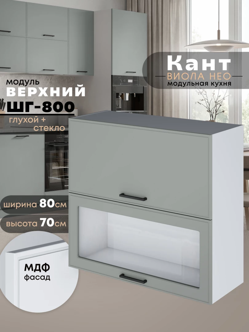 Кухонный модуль навесной с откидными створками Виола Нео Кант ШГ-800 (глухой/стекло) Матовый