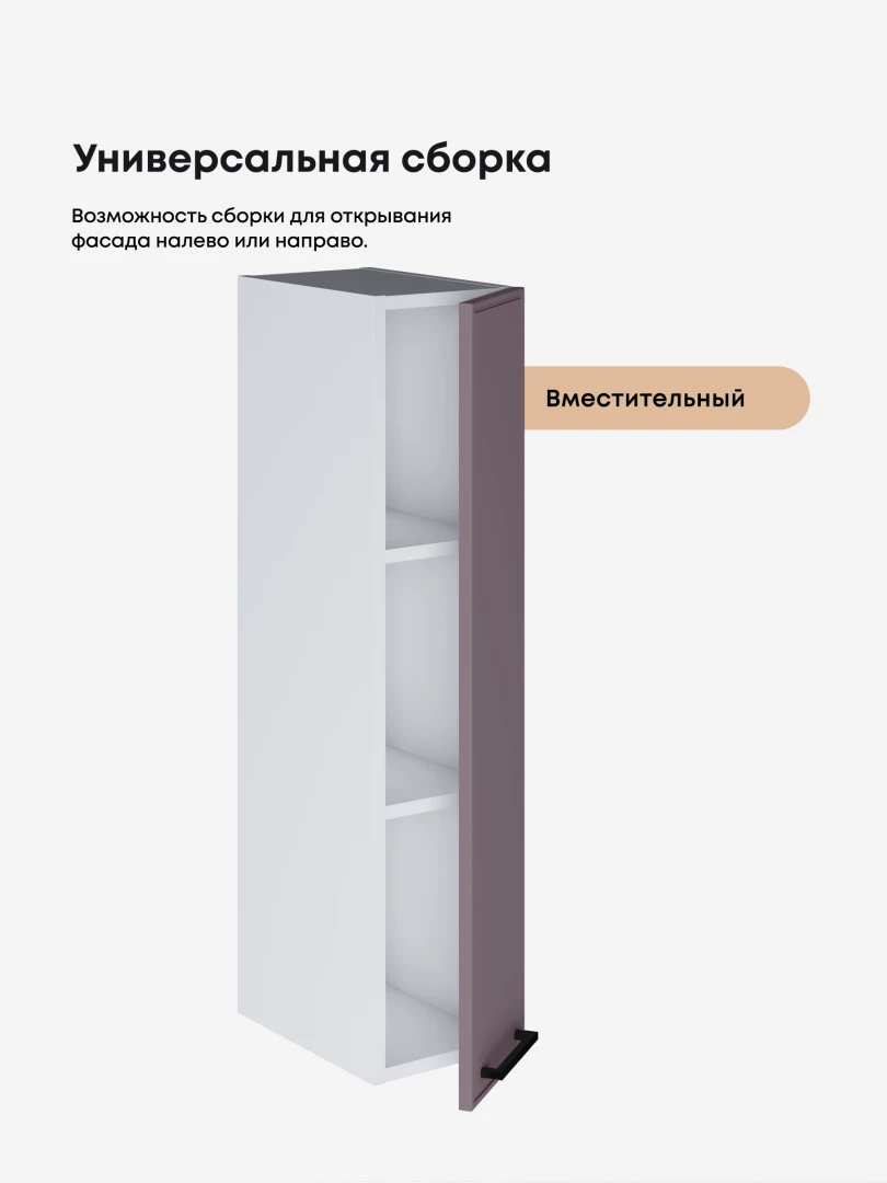 Ручка-скоба С-42 изготовлена из прочного пластика, что обеспечивает долговечность и надежность в использовании. Черный матовый цвет покрытия придает изделию стильный и современный вид. Фасады представлены в 15 цветовых решениях, что позволит органично вписать данную кухню в любой современный дизайн.