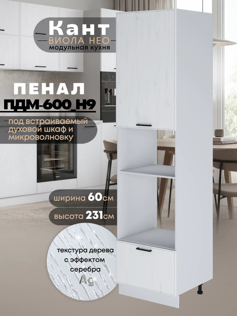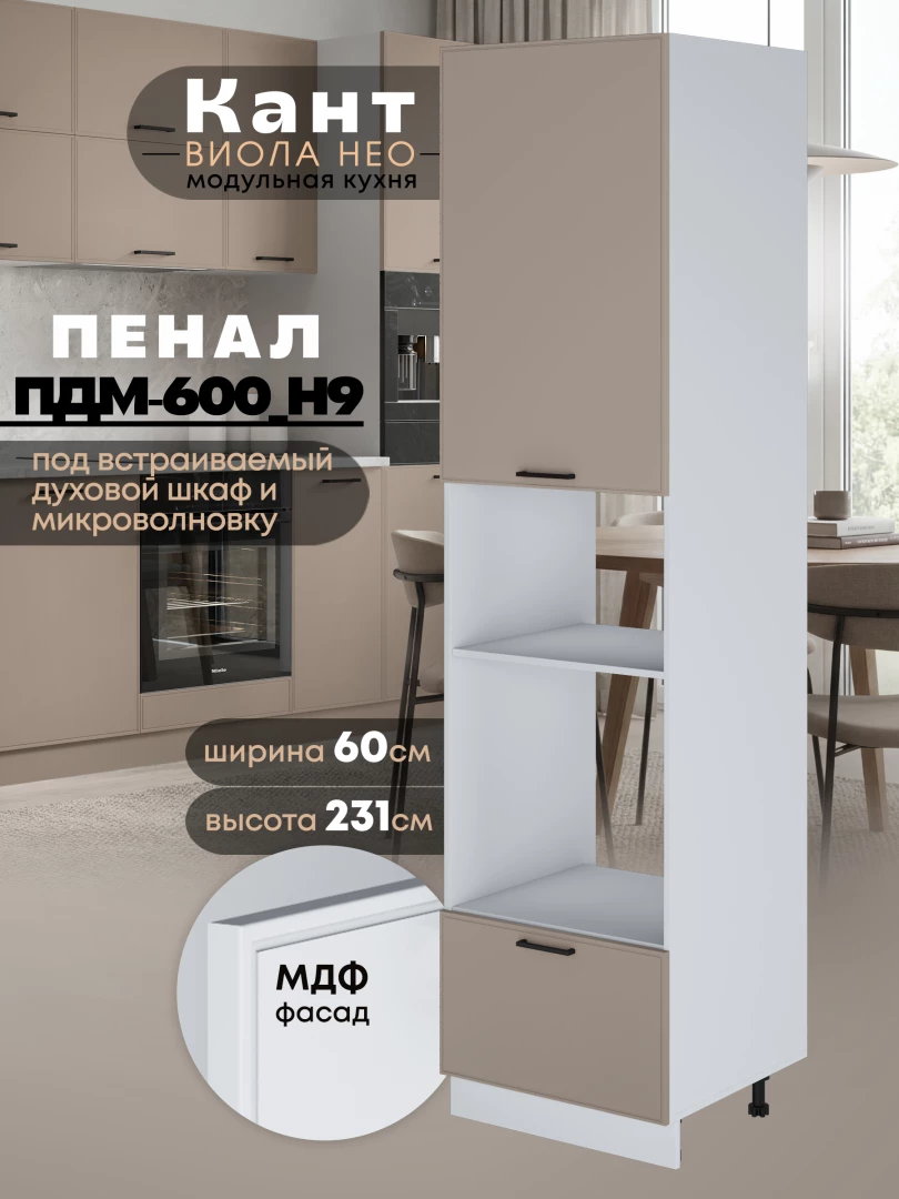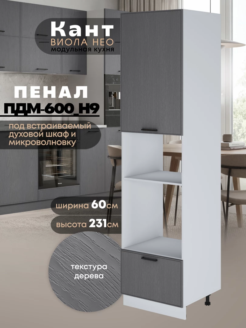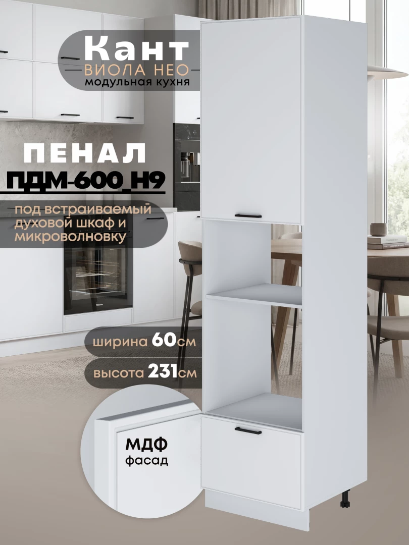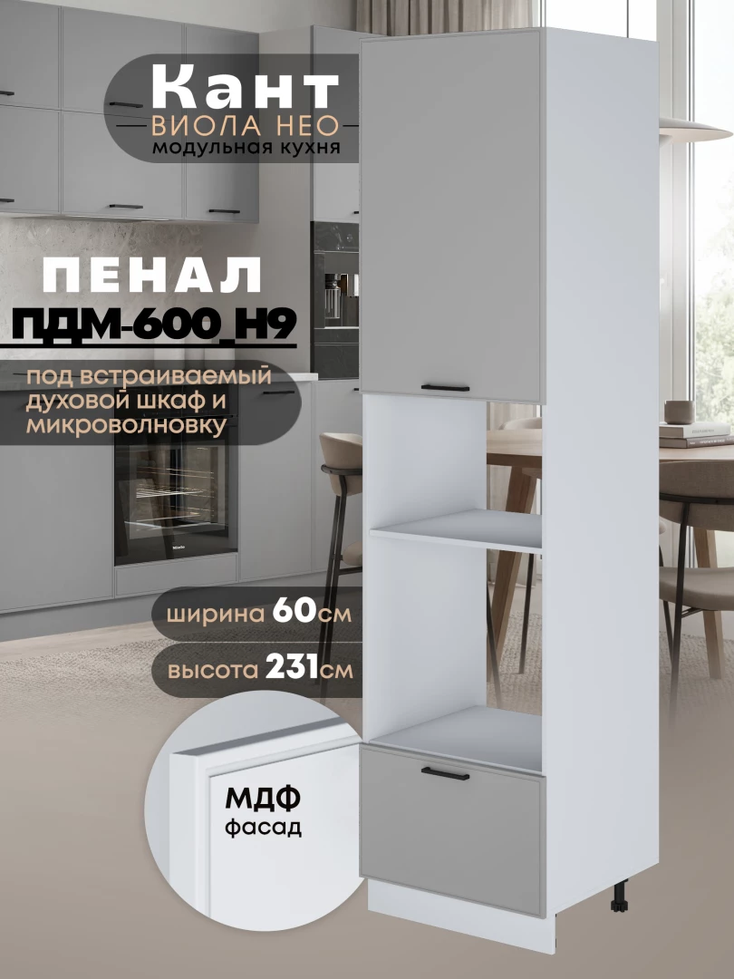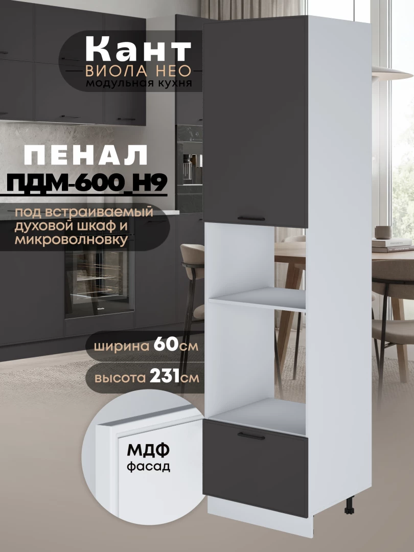 Шкаф-пенал для кухни под встраиваемую технику Виола Нео Кант ПДМ-600 (Н9) Матовый