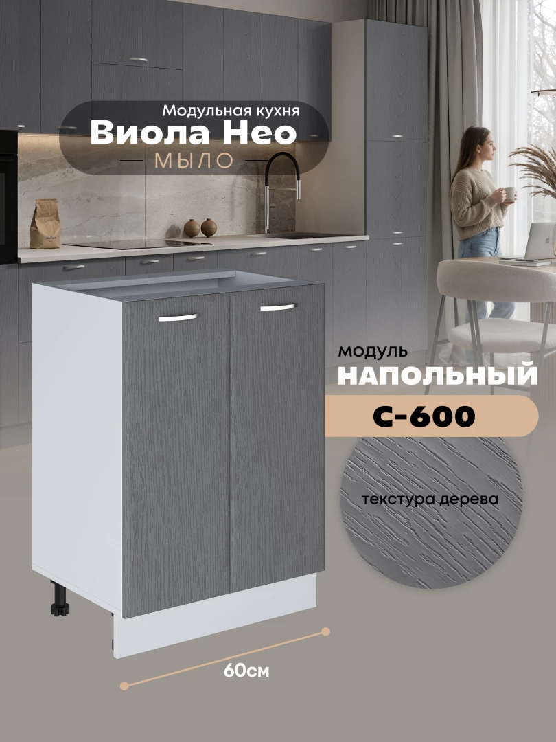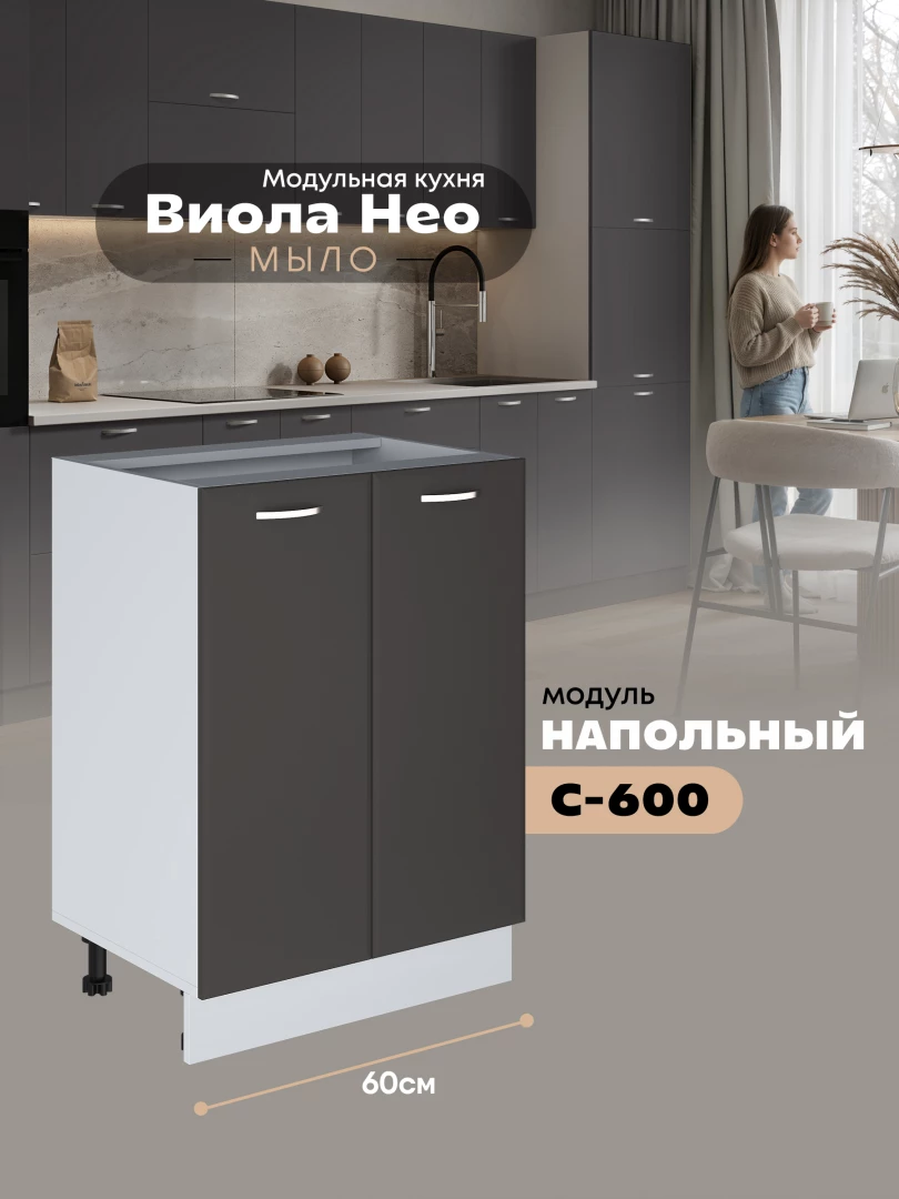 Кухонный модуль напольный с двумя створками Виола Нео Мыло С-600 Матовый