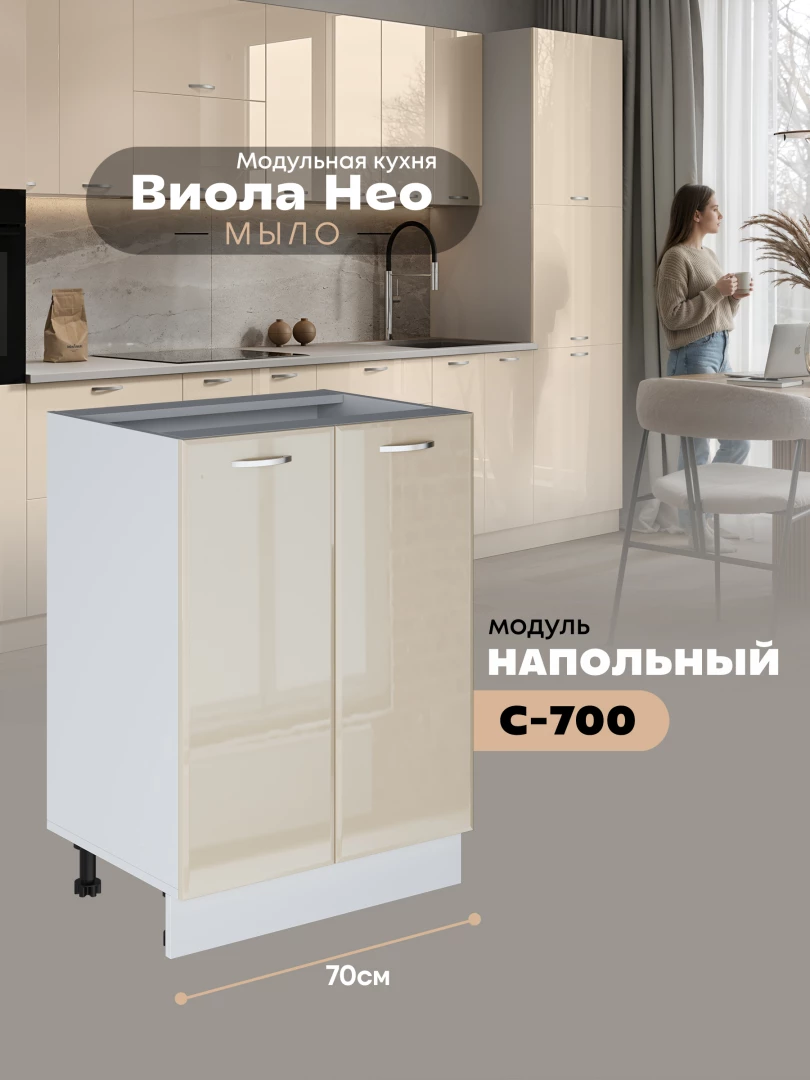 Кухонный модуль напольный с двумя створками Виола Нео Мыло С-700 Глянцевый