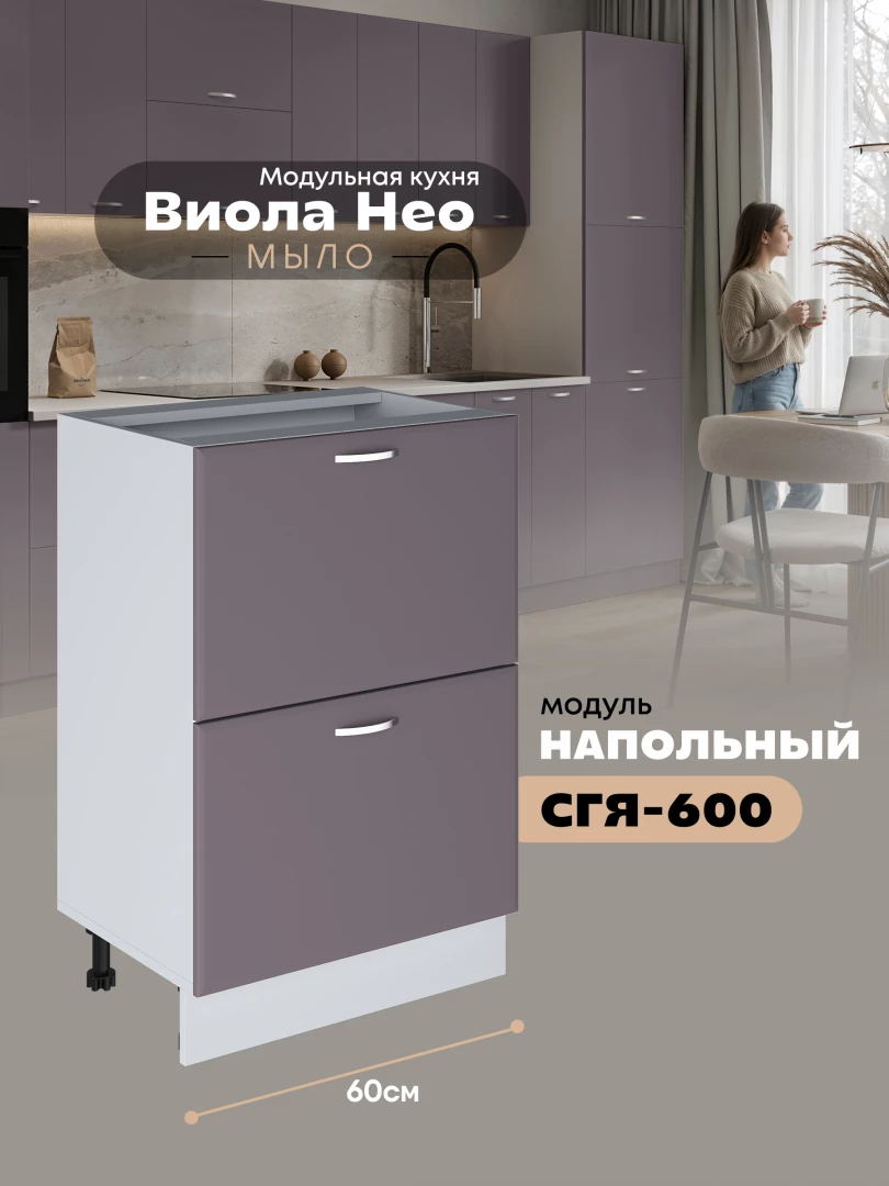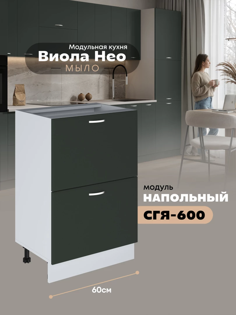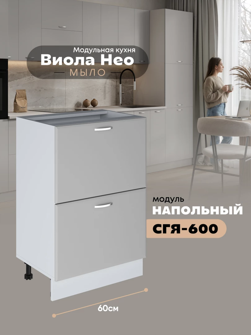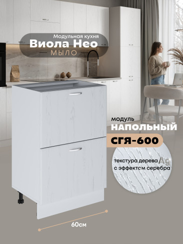 Кухонный модуль напольный с двумя выдвижными ящиками Виола Нео Мыло СГЯ-600 Матовый
