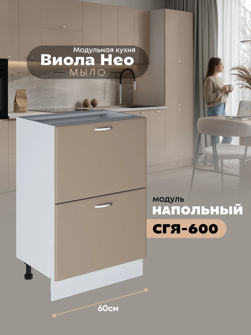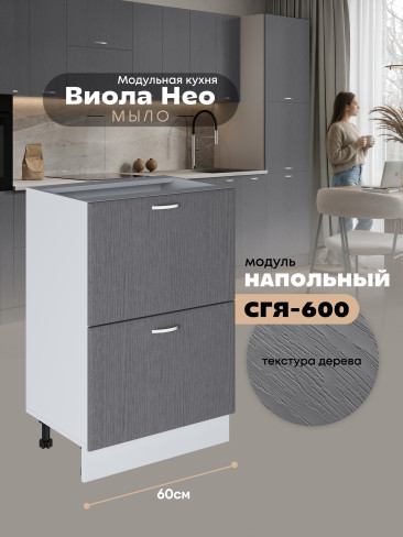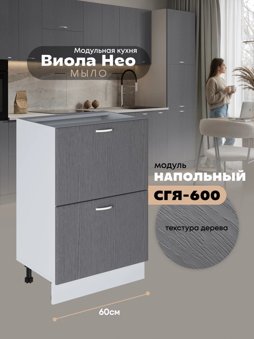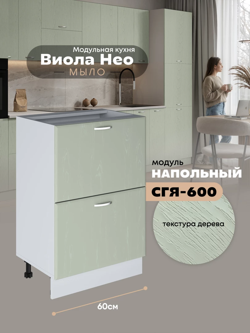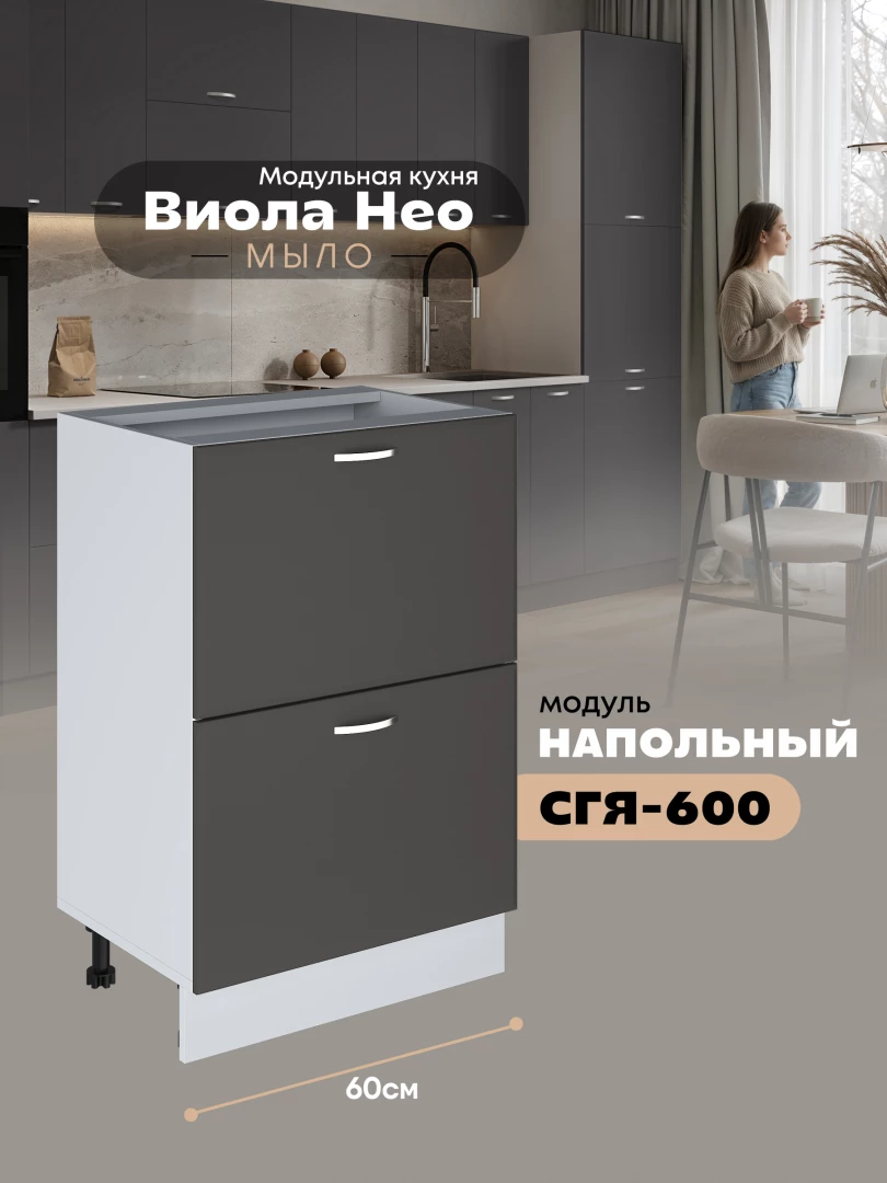 Кухонный модуль напольный с двумя выдвижными ящиками Виола Нео Мыло СГЯ-600 Матовый